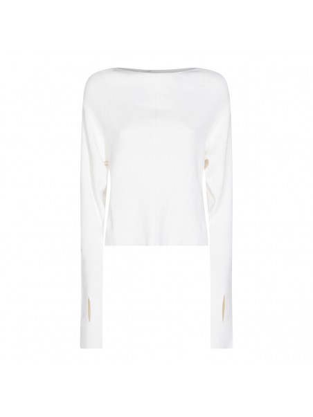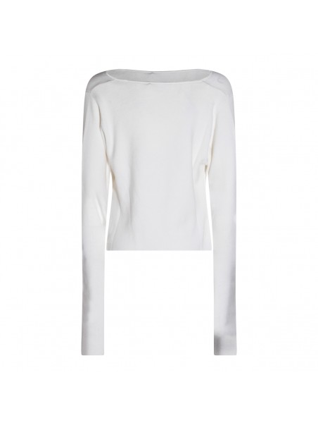 White cotton knitwear from Aya Muse featuring round collar, long sleeves and regular vestibility.