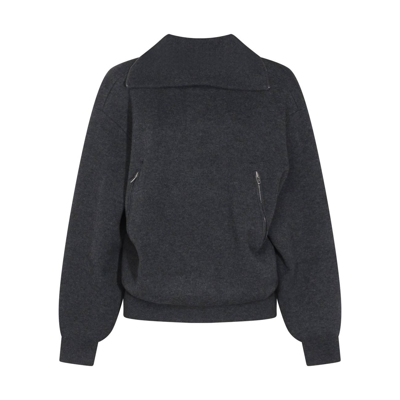 Dark grey wool knitwear from Balenciaga featuring zipped collar, long sleeves, pockets, ribbed cuffs and hem and regular vestibility.