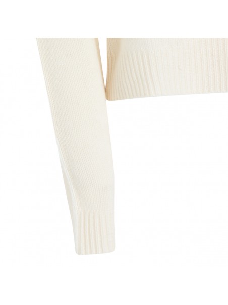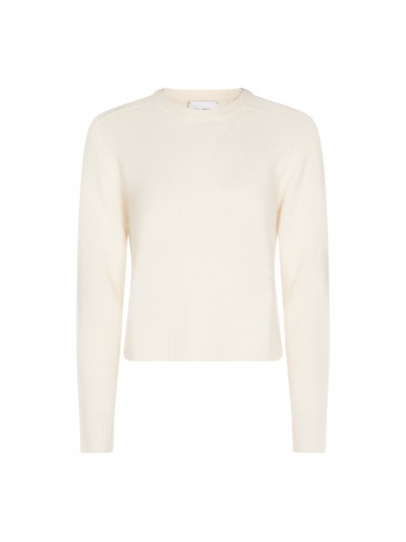 White cashmere knitwear from Kujten featuring long sleeves, round collar, ribbed collar, hem and sleeves and soft vestibility.