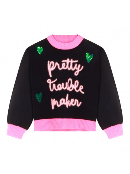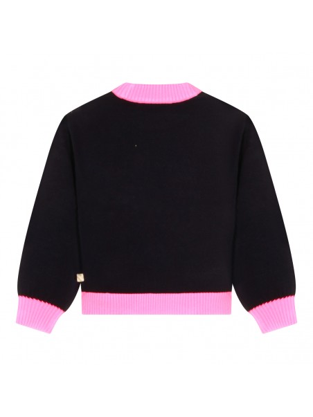 Pink and black knitwear from Billieblush featuring round collar, long sleeves and regular vestibility.