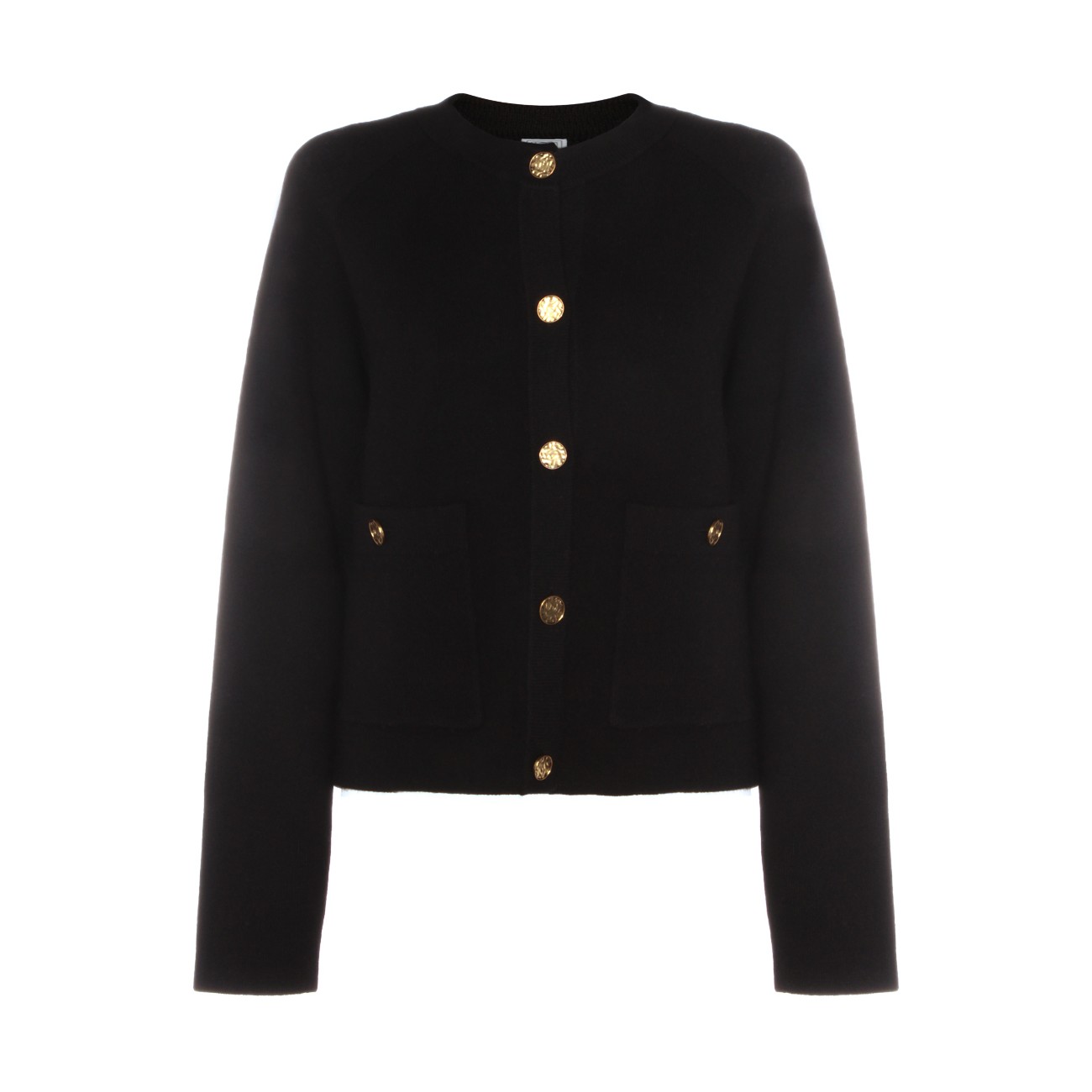 Black cashmere knitwear from Toteme featuring round collar, long sleeves, buttons fastening and regular vestibility.