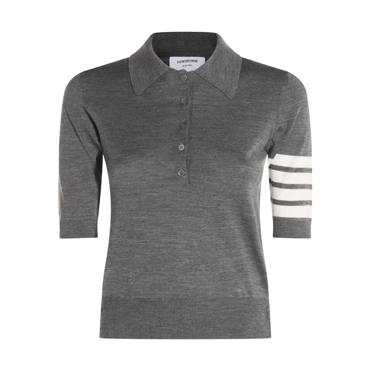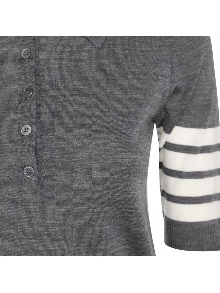 Grey wool polo shirt from Thom Browne featuring midi sleeves, polo shirt collar, buttons fastening and soft vestibility.