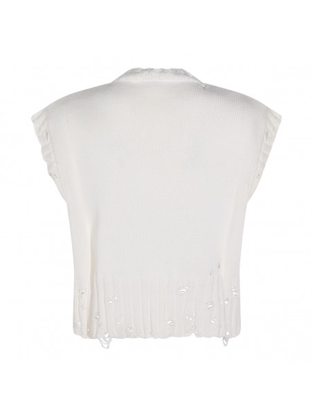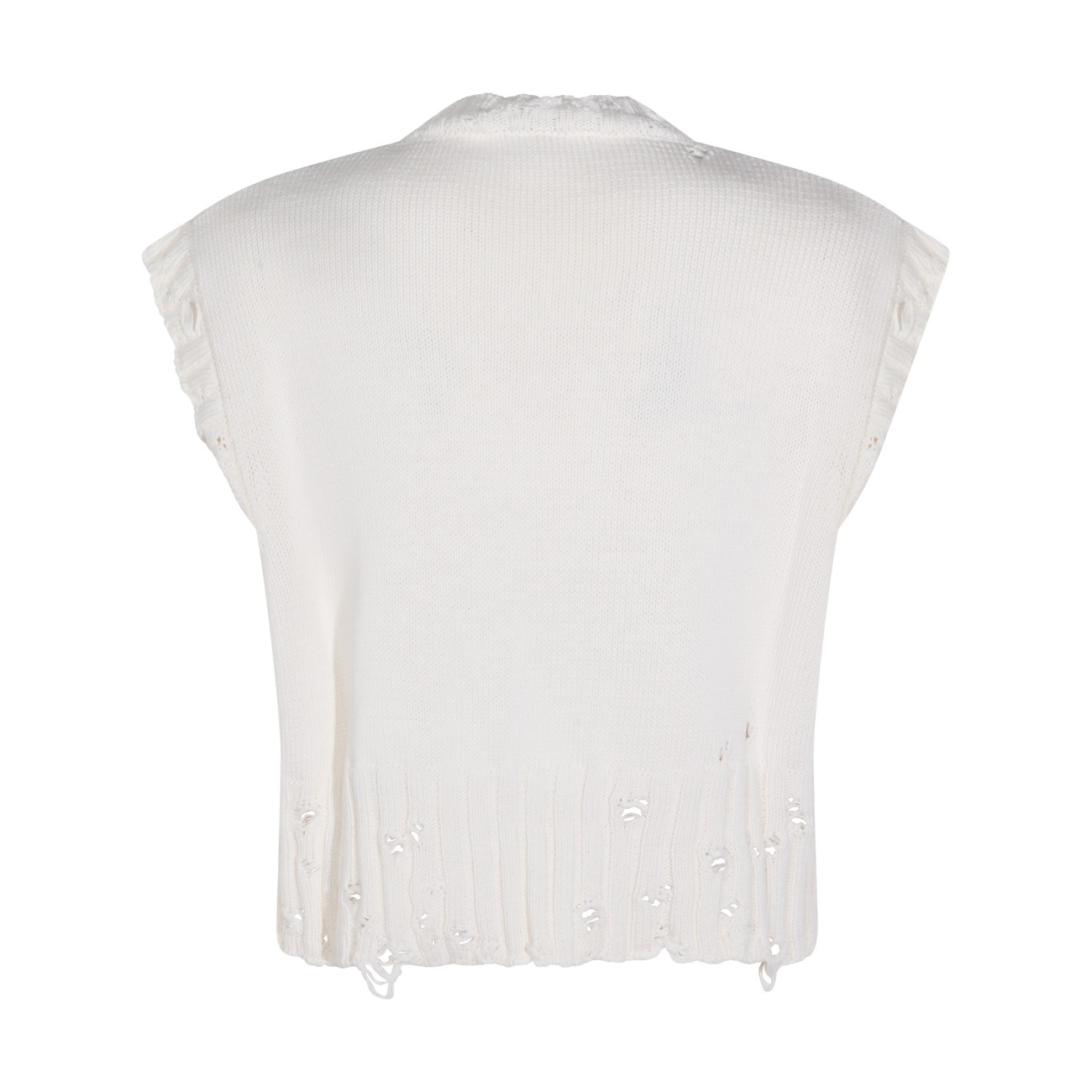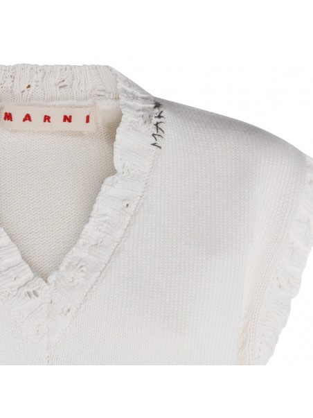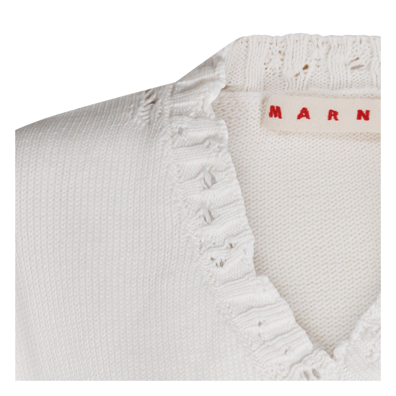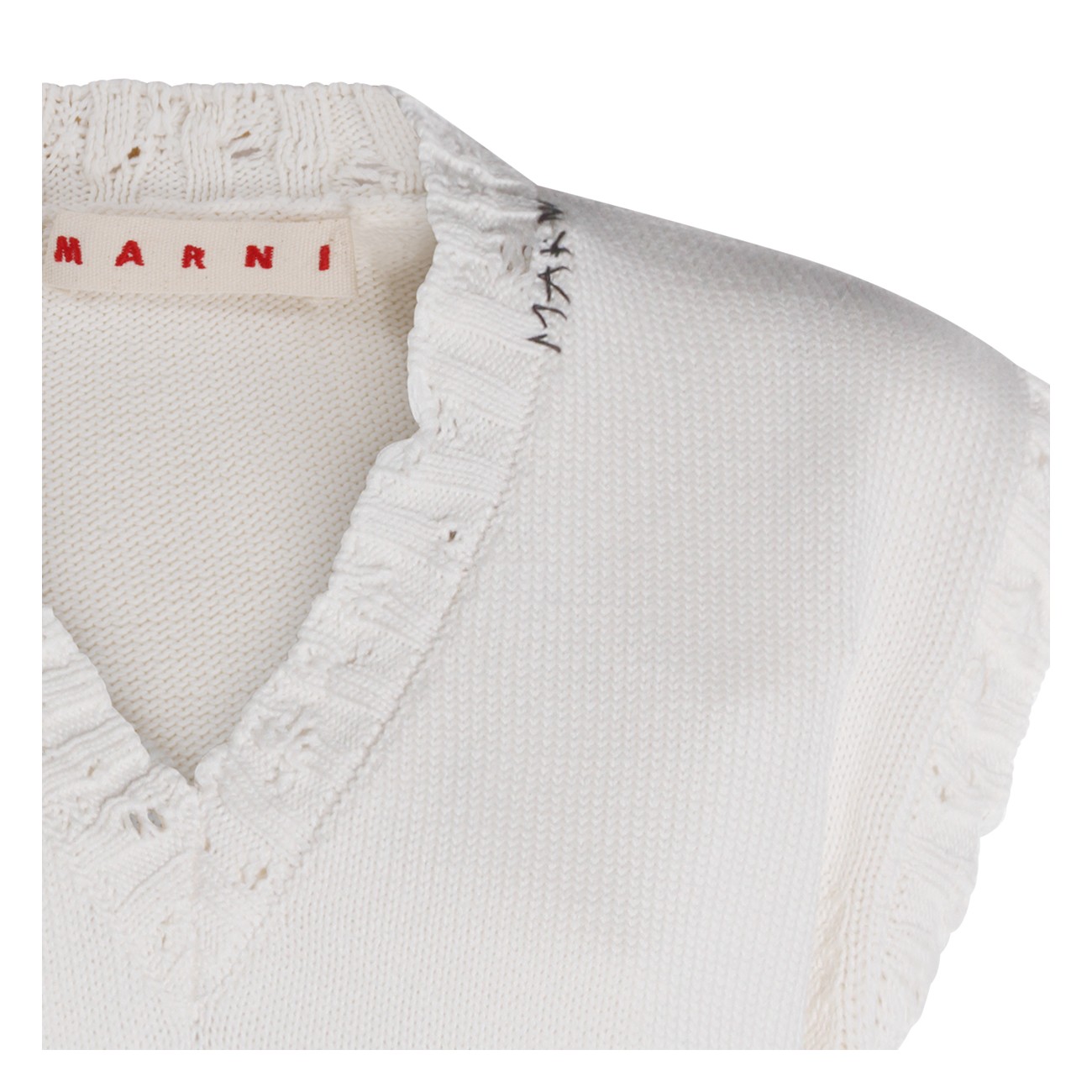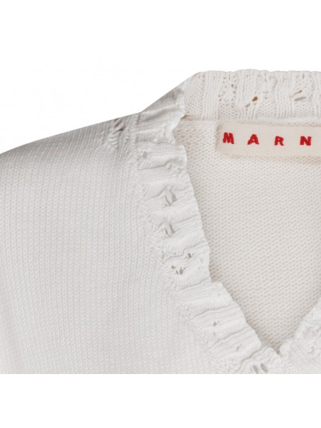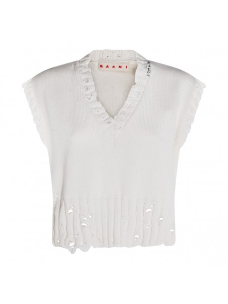 White cotton knitwear from Marni featuring V-neck, sleeveless, short length and holes details.