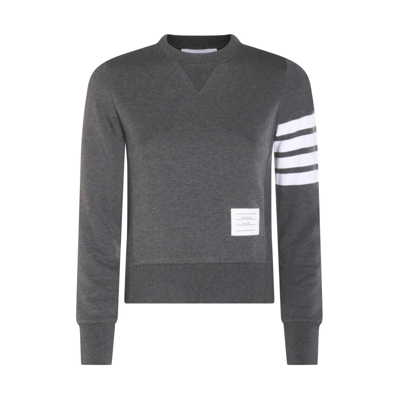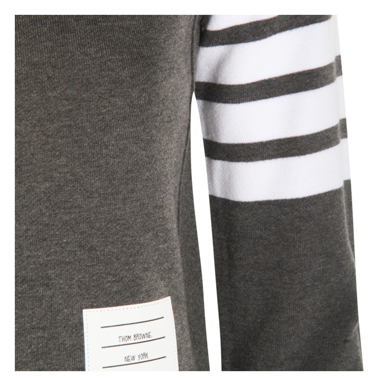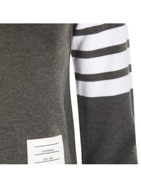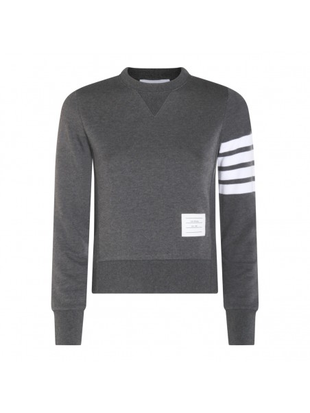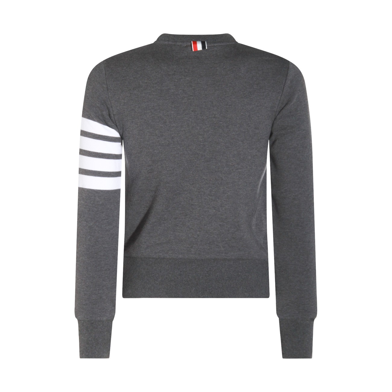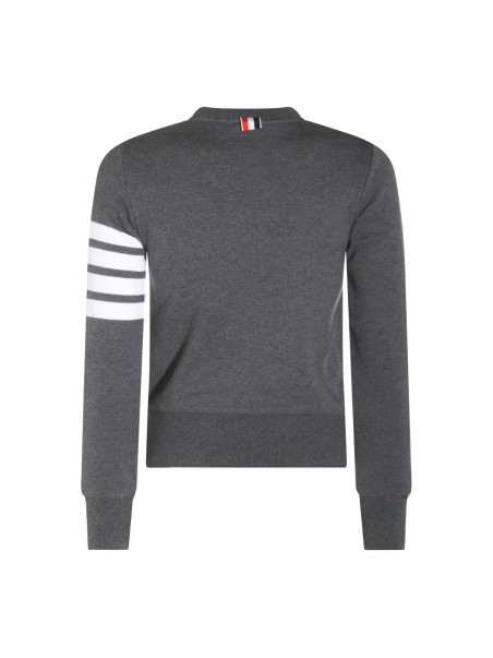 Dark grey cotton knitwear from Thom Browne featuring long sleeves, logo patch, ribbed cuffs and hem and regular vestibility.