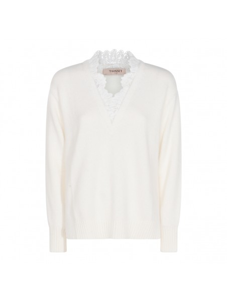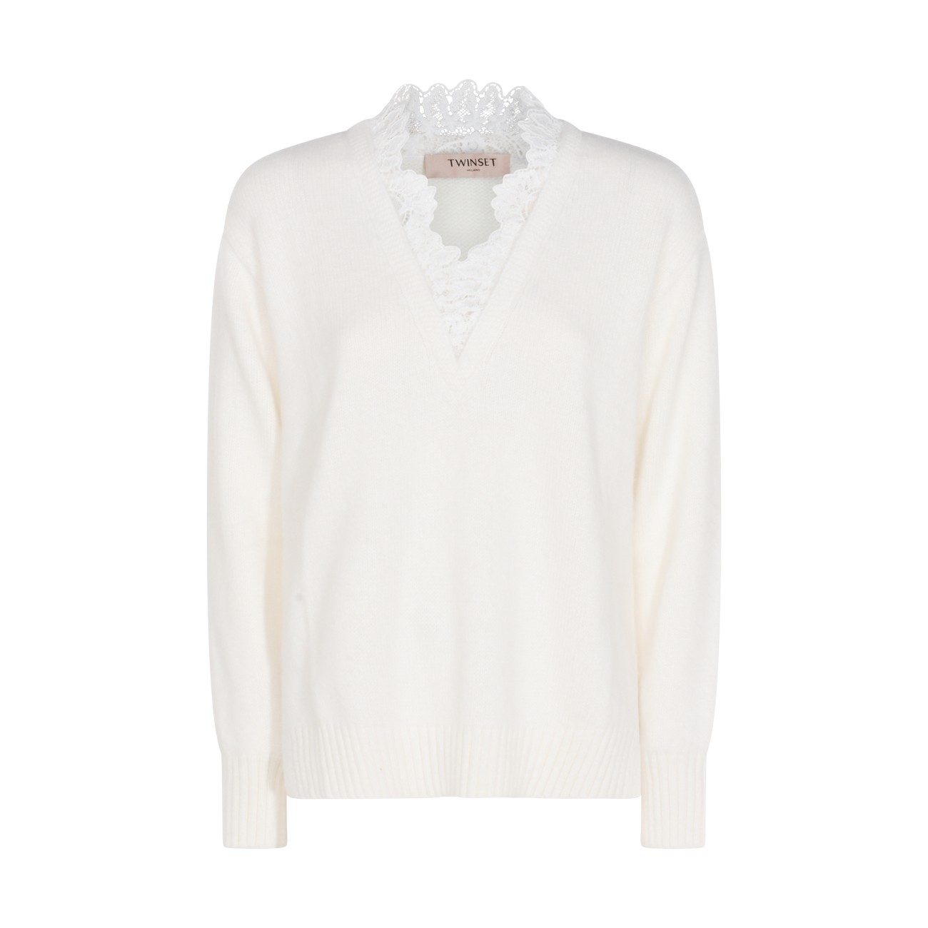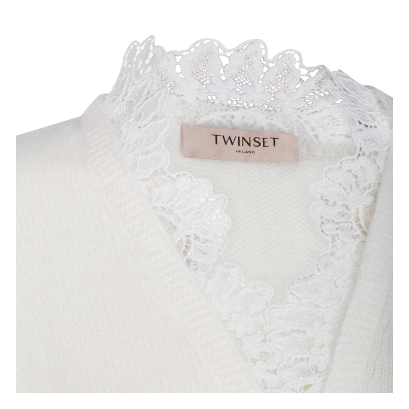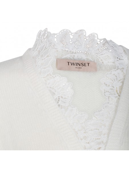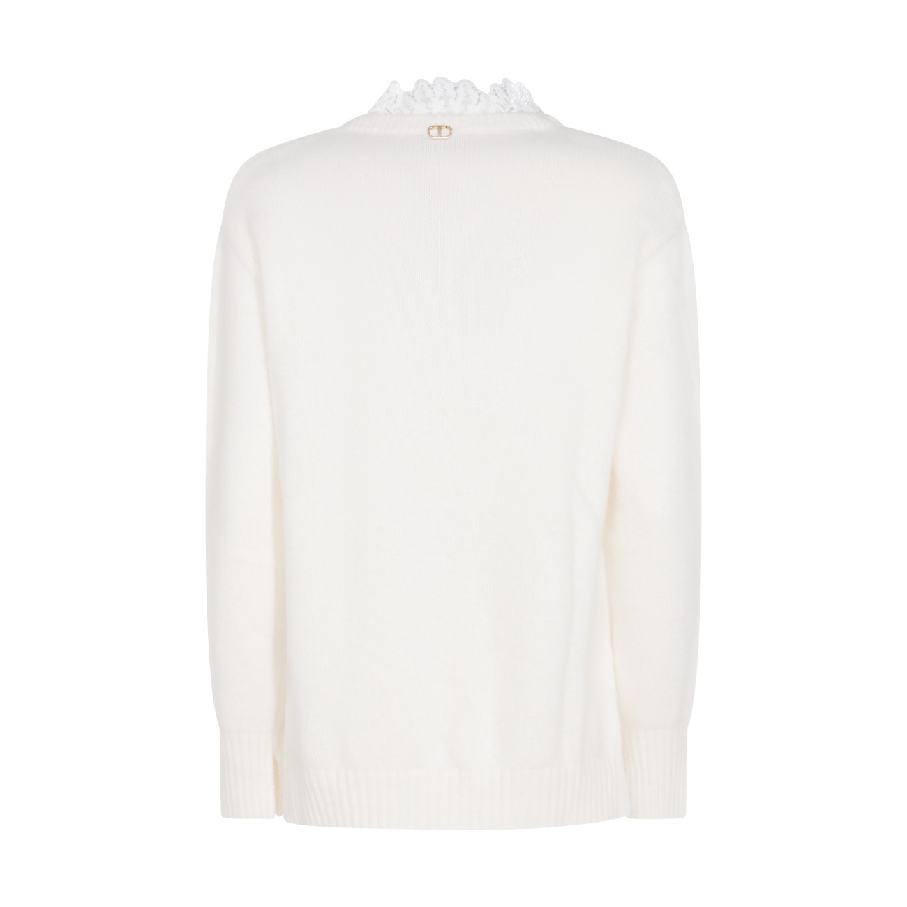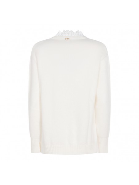 White knitwear from Twinset featuring collar detail, long sleeves and regular vestibility.