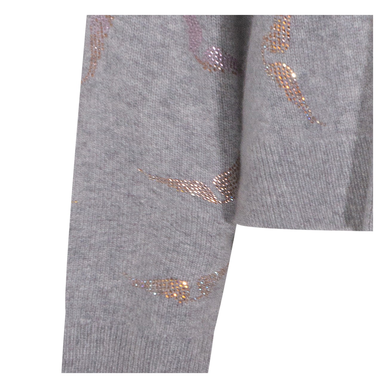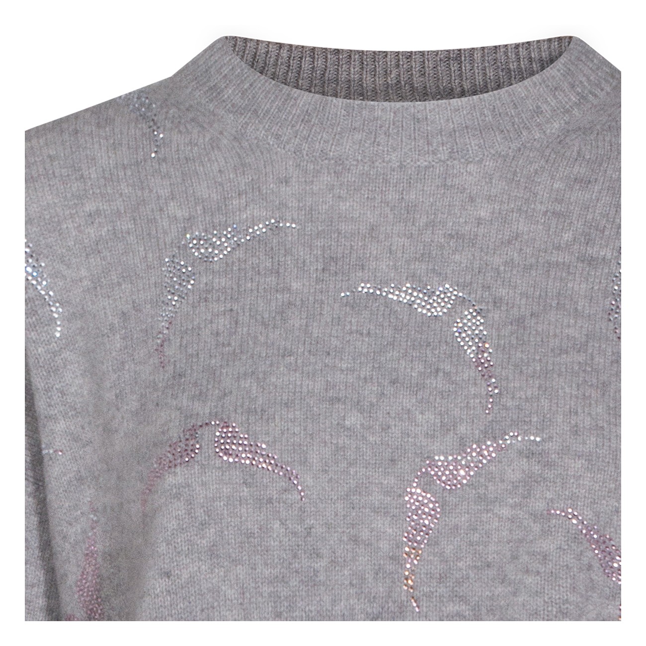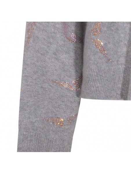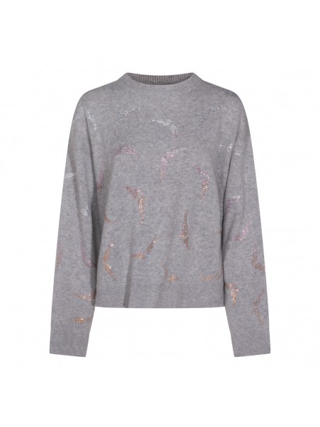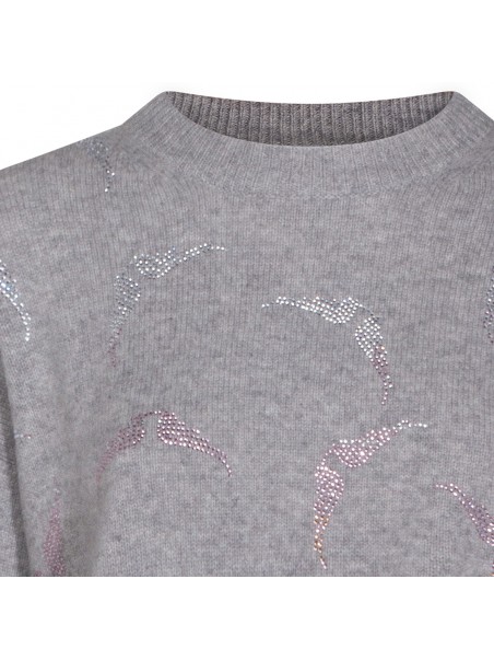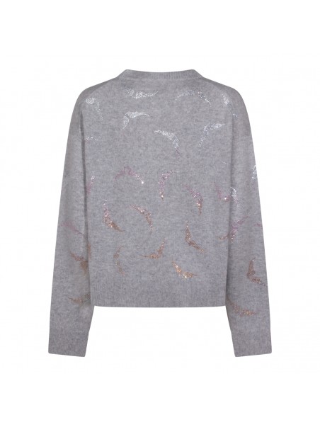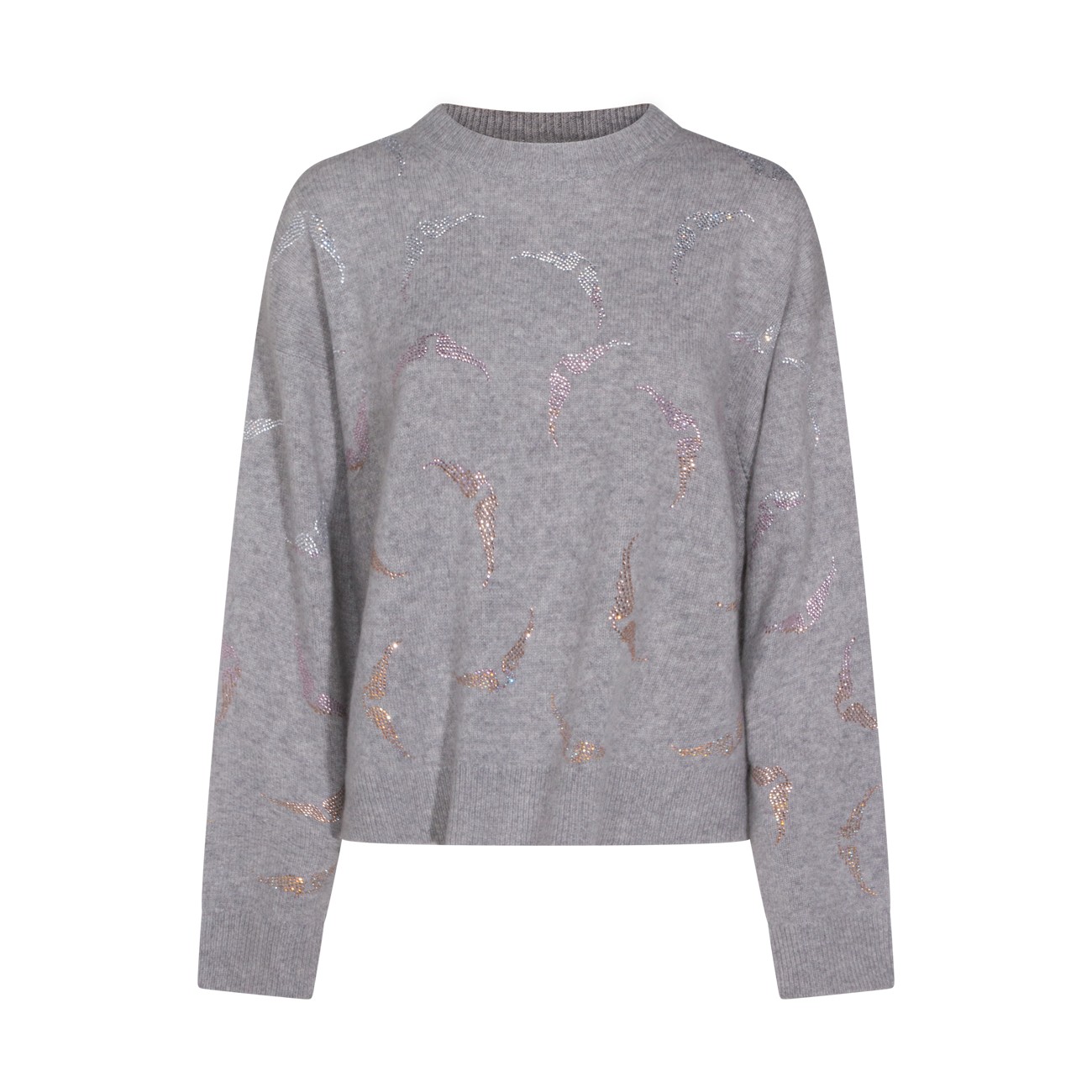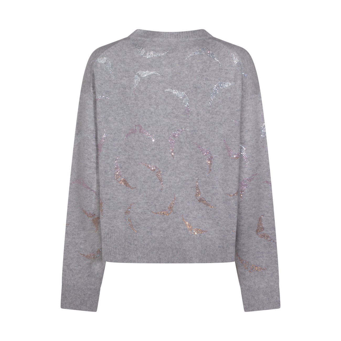 Grey cashmere knitwear from Zadig & Voltaire featuring crew neck, long sleeves, rhinestone details and loose fit.