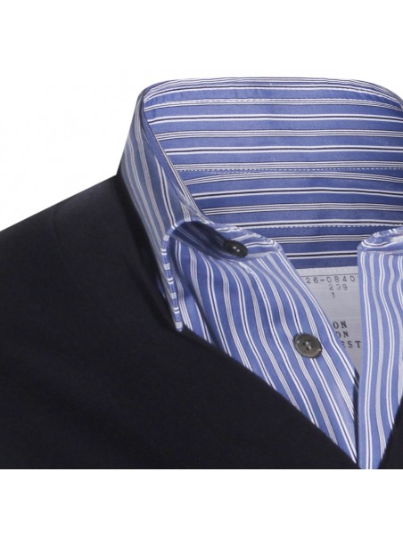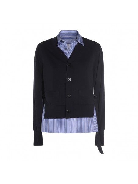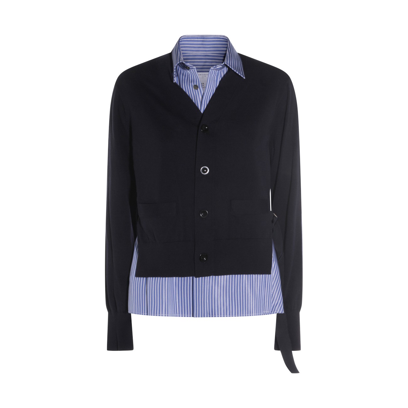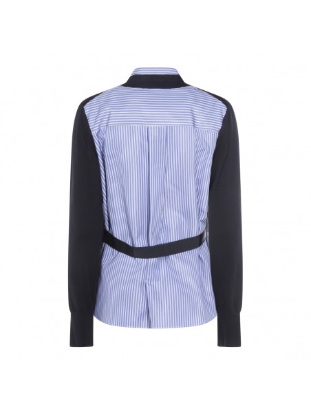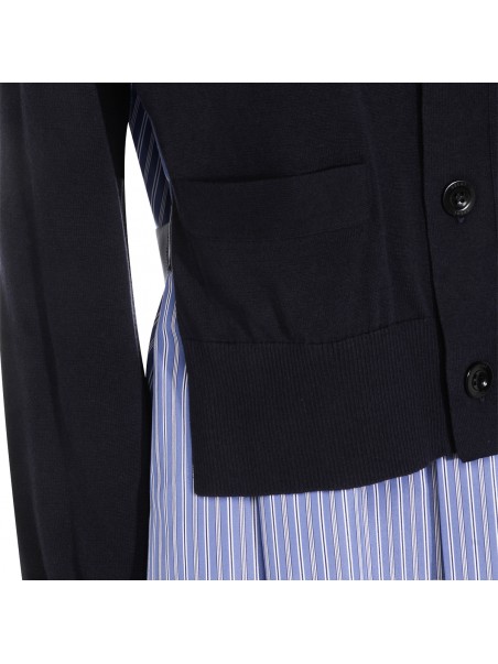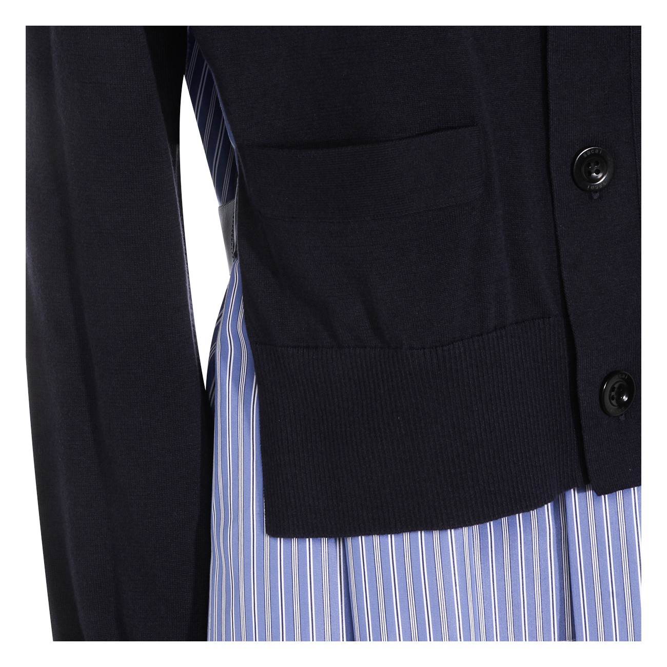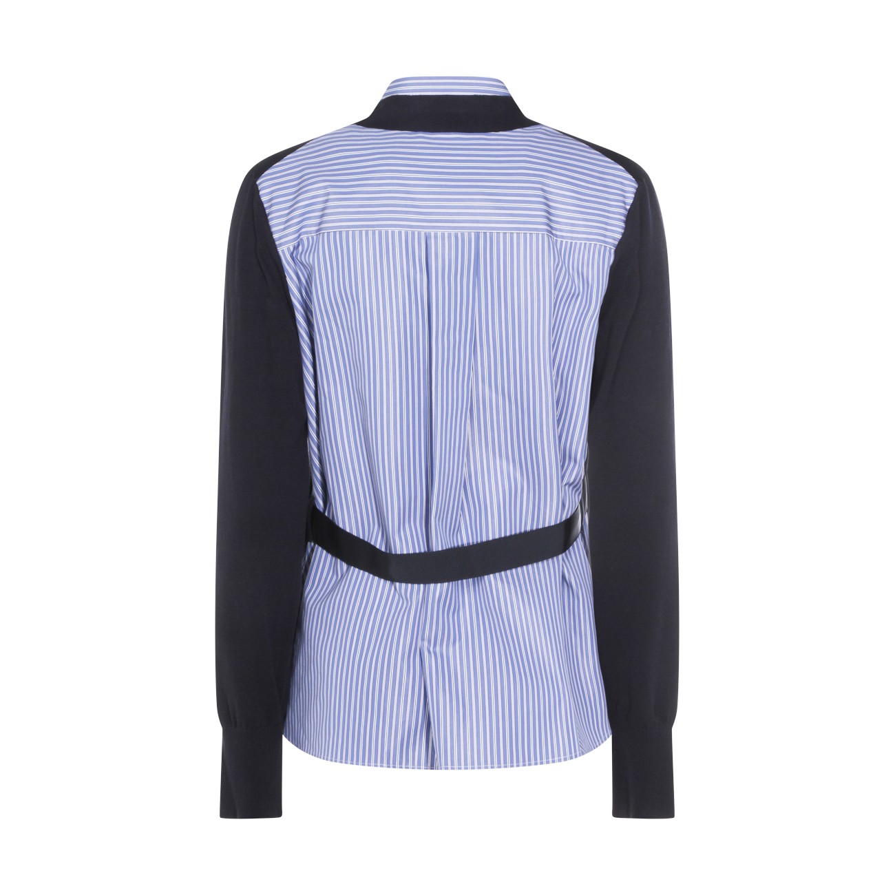 Blue and light blue knitwear from Sacai featuring shirt detail, shirt collar, long sleeves, frontal fastening and regular vestibility.