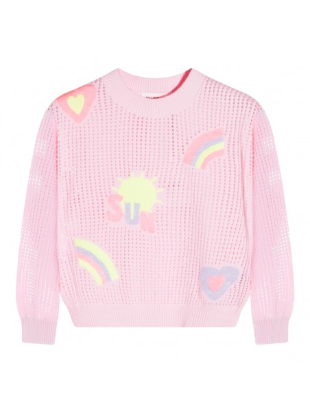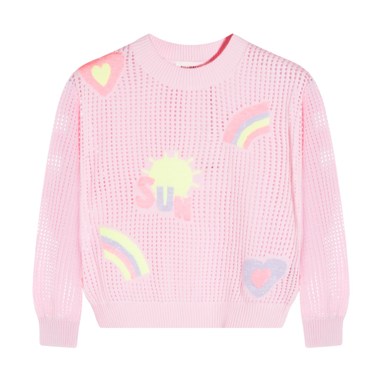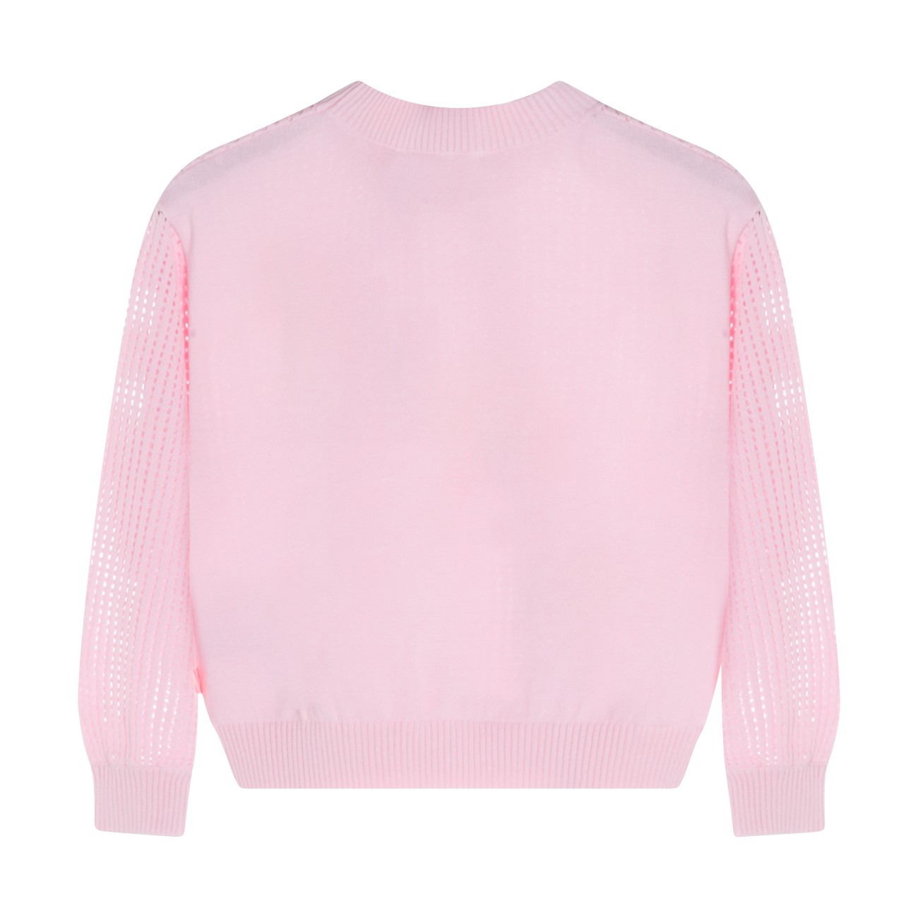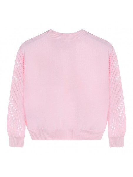 Pink cotton knitwear from Billieblush featuring long sleeves, round collar and print.
