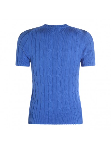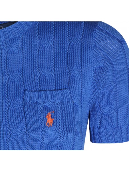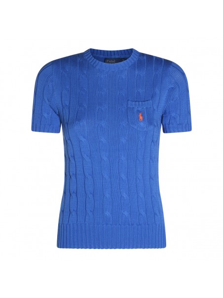 Blue cotton knitwear from Polo Ralph Lauren featuring round collar, short sleeves, pocket with logo and regular vestibility.