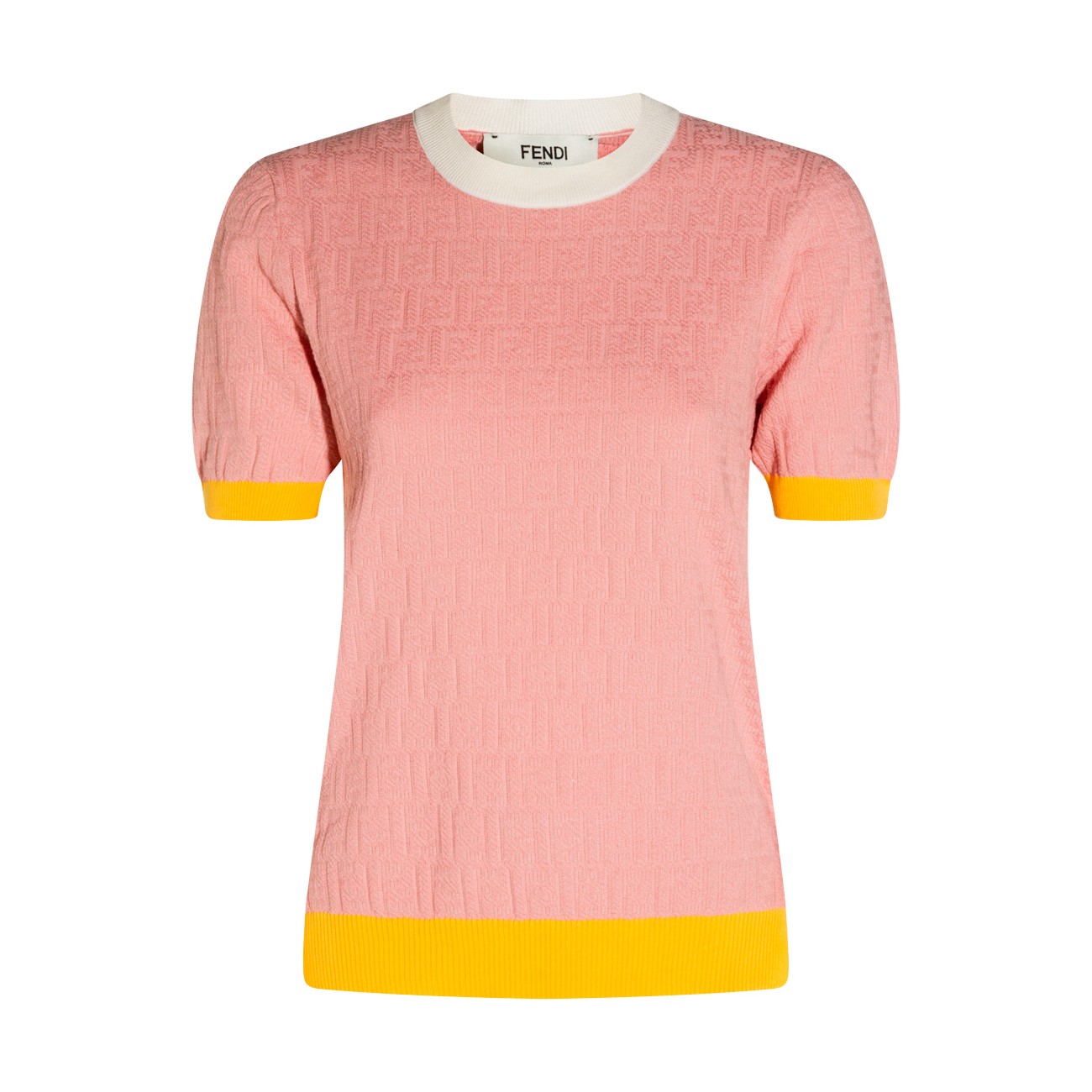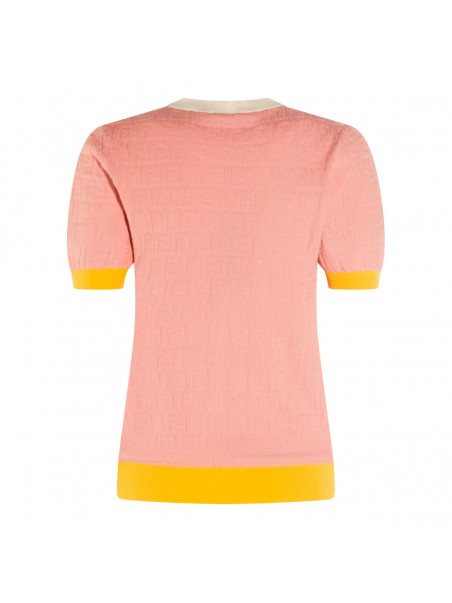 Pink cotton knitwear from Fendi featuring short sleeves, round collar and regular vestibility.