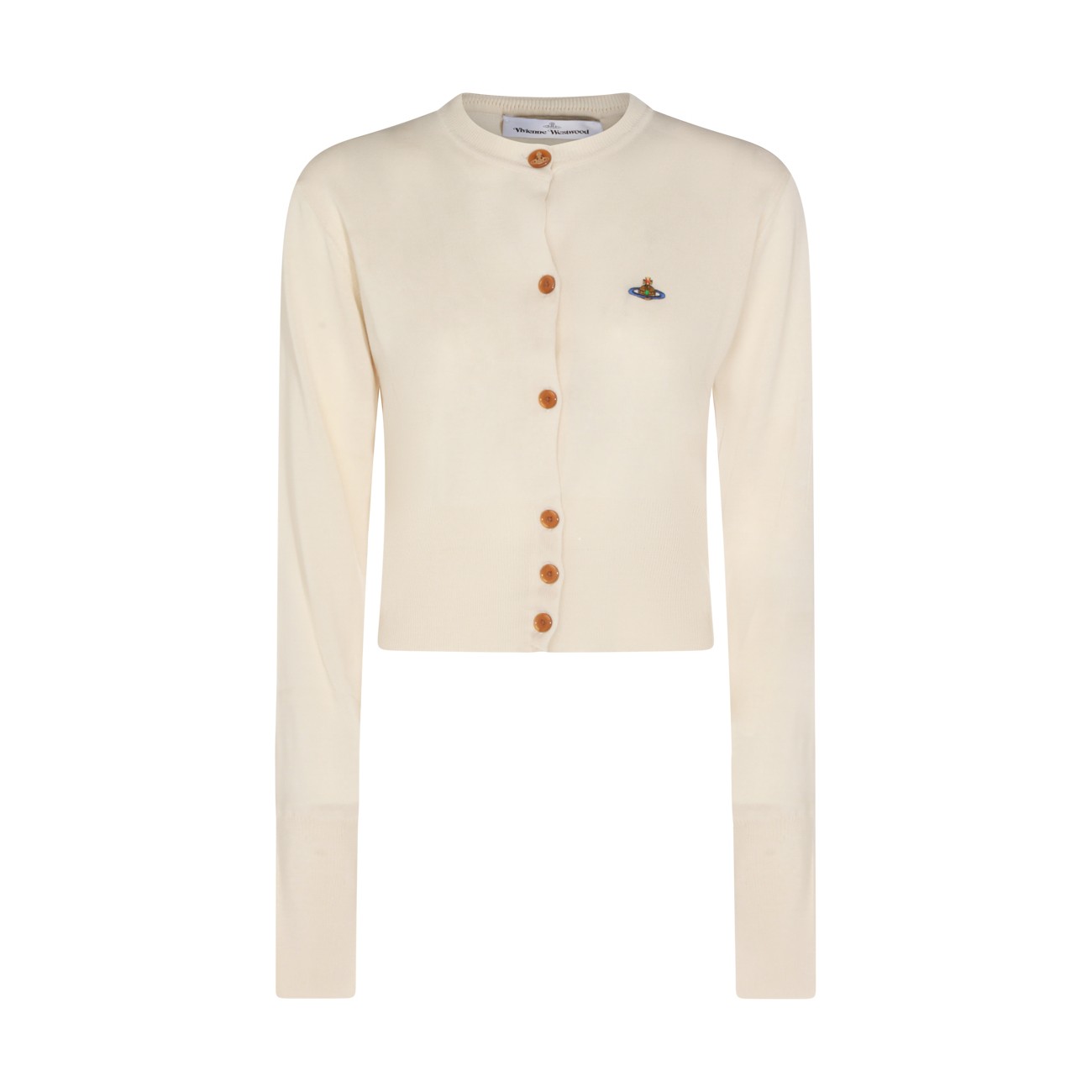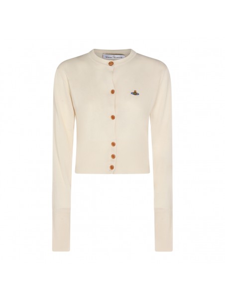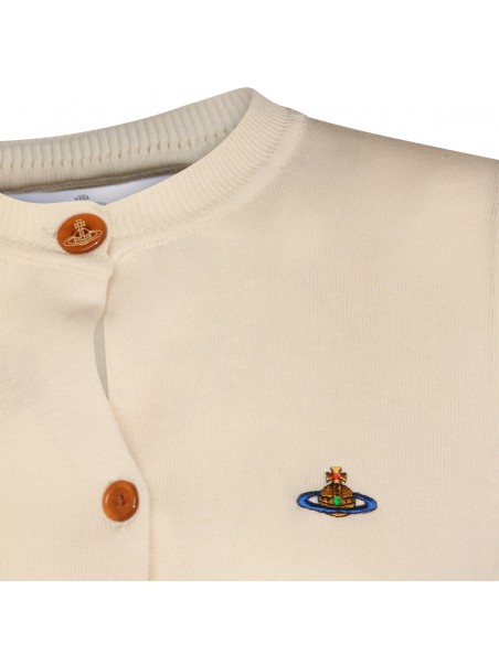 Beige wool knitwear from Vivienne Westwood featuring long sleeves, buttons fastening, frontal logo and comfortable fit.