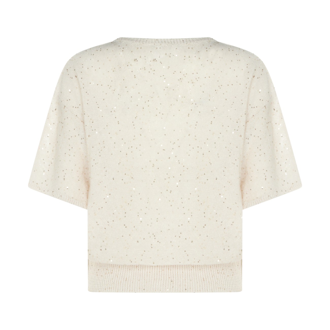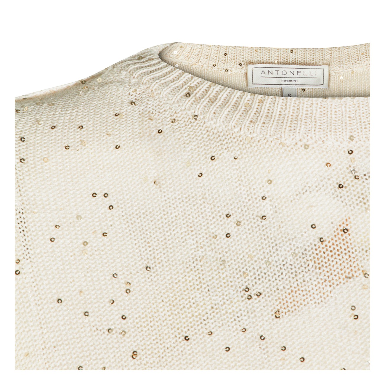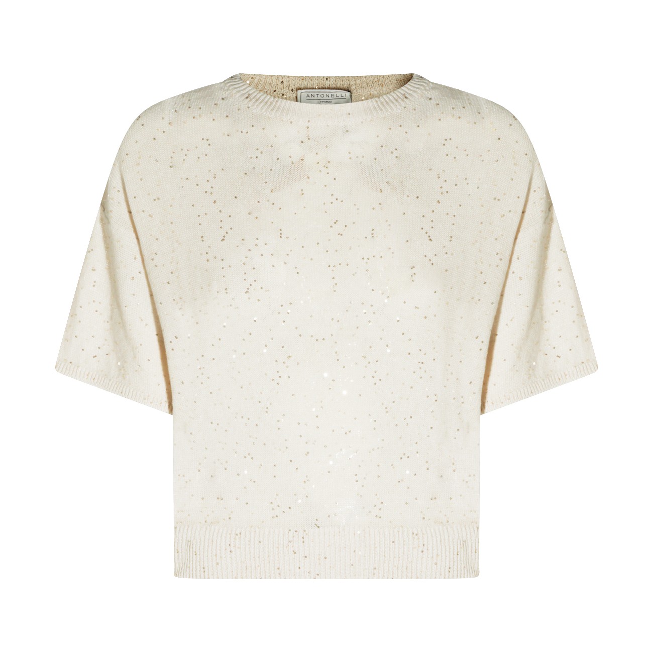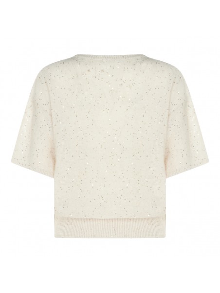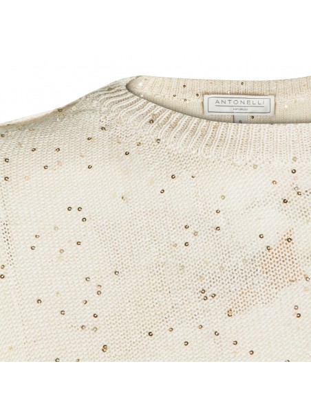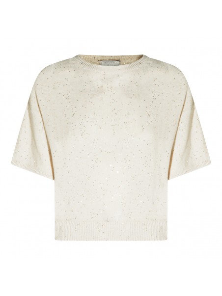Beige linen cotton blend knitwear from Antonelli Firenze featuring round collar, short sleeves and regular fit.