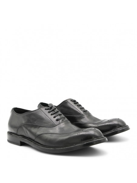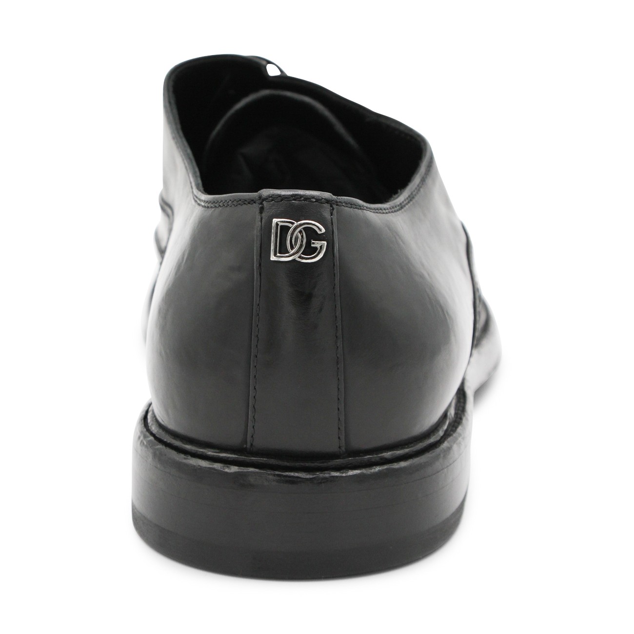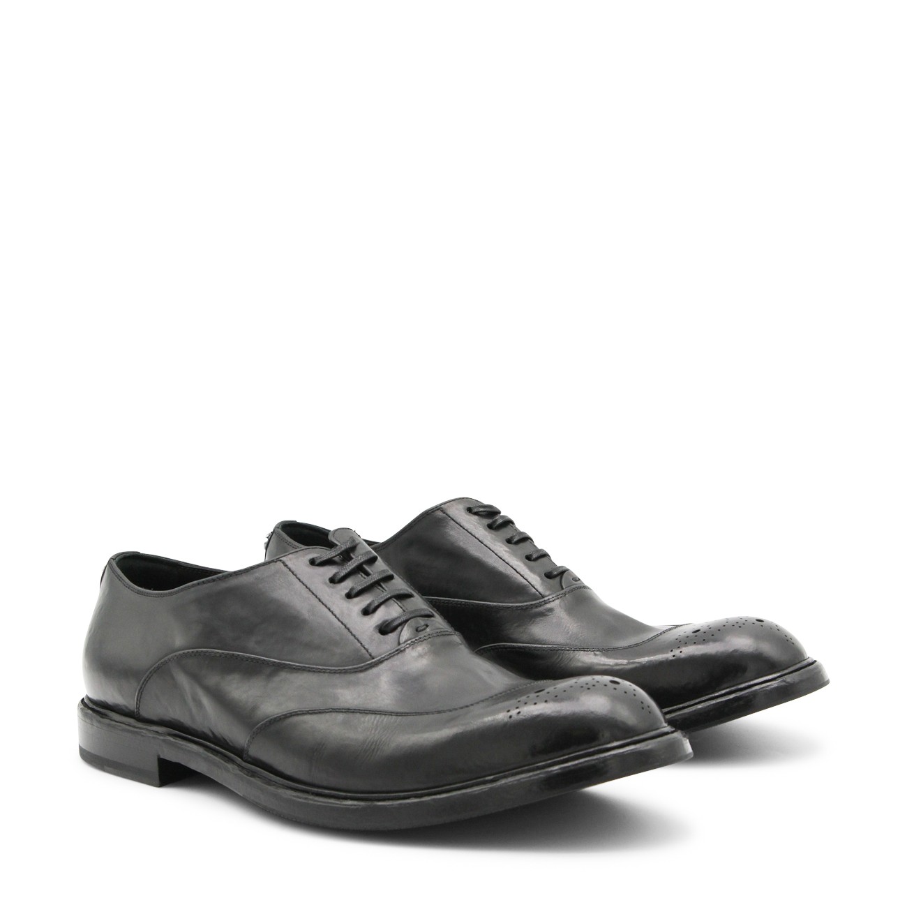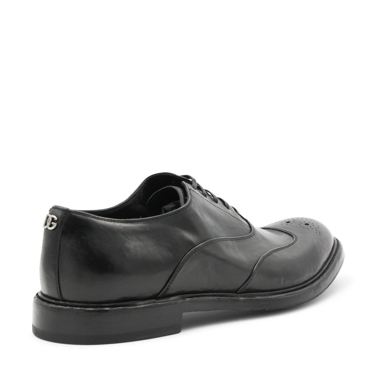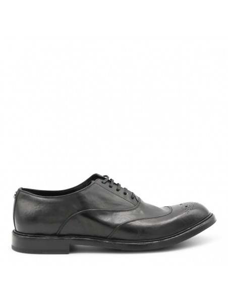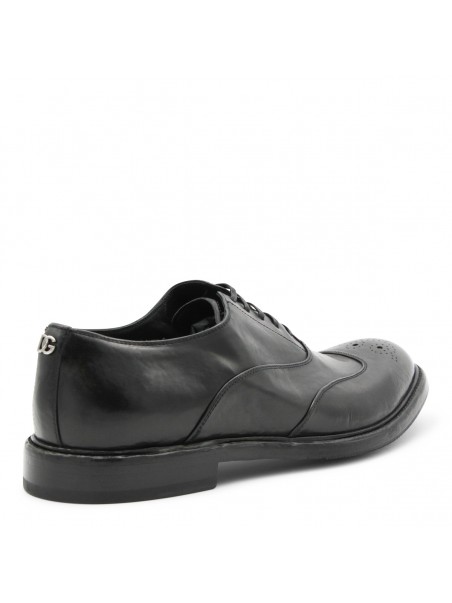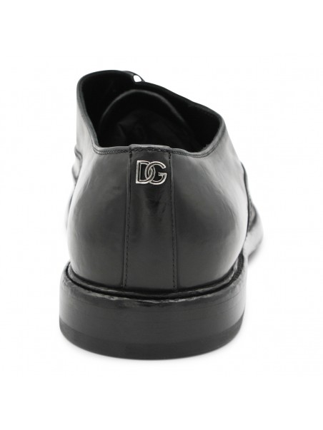 Black leather lace up shoes from Dolce & Gabbana featuring pointed toe, lace fastening, leather sole and details.