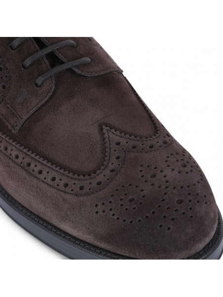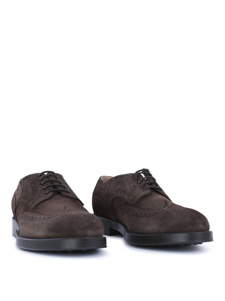 Tobacco suede lace up shoes from Tod's featuring round toe, rubber sole, branded insole, lace up closure.
