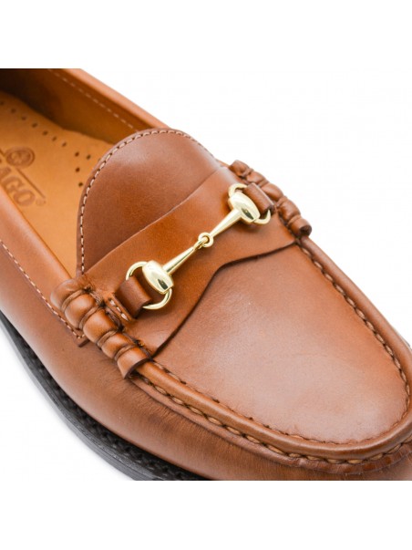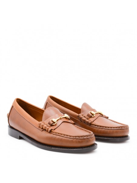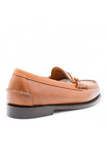 Brown Joe Modena loafers from Sebago featuring round toe, gold tone hardware and leather sole.