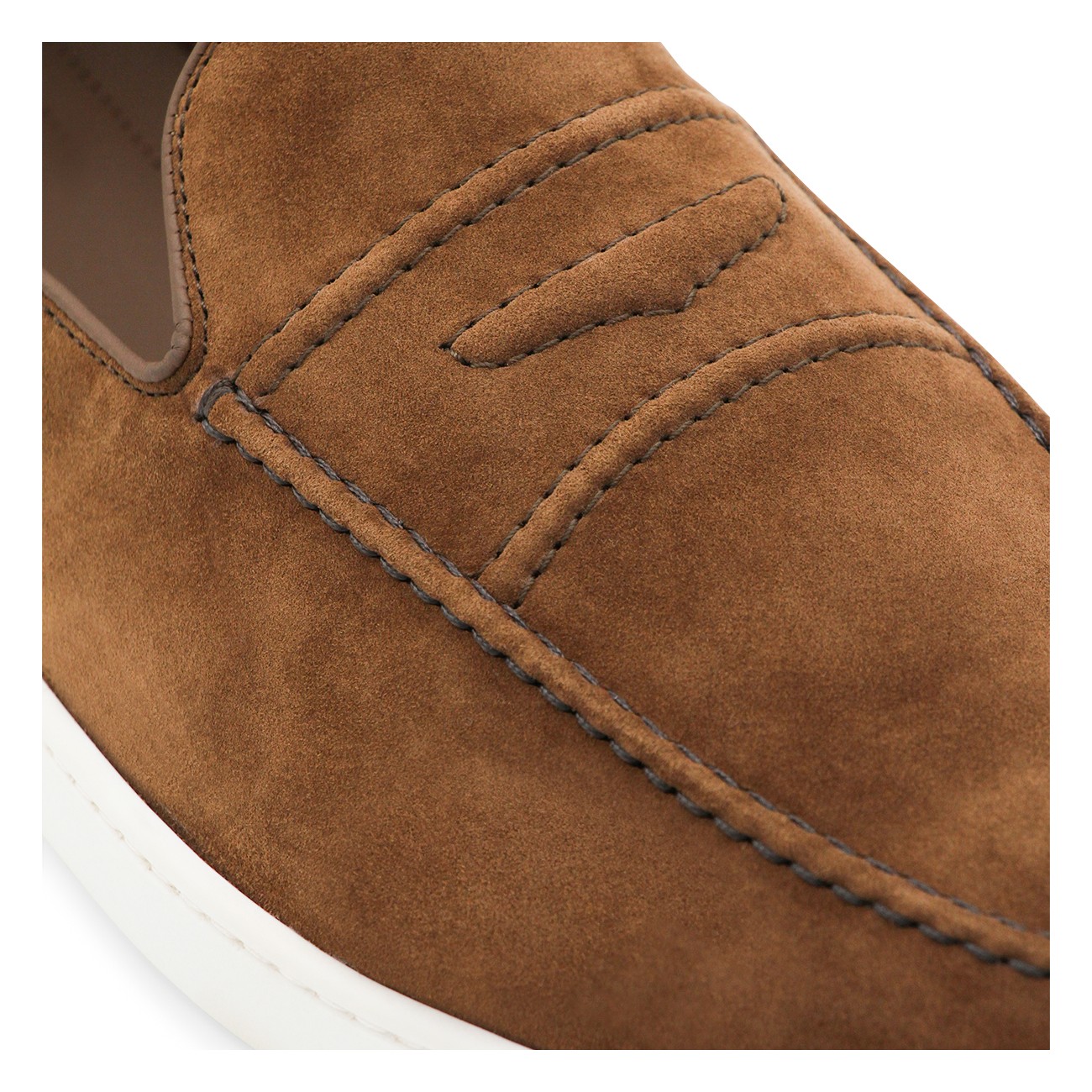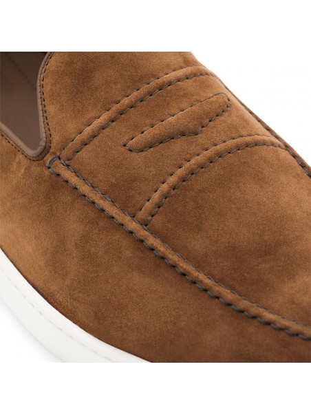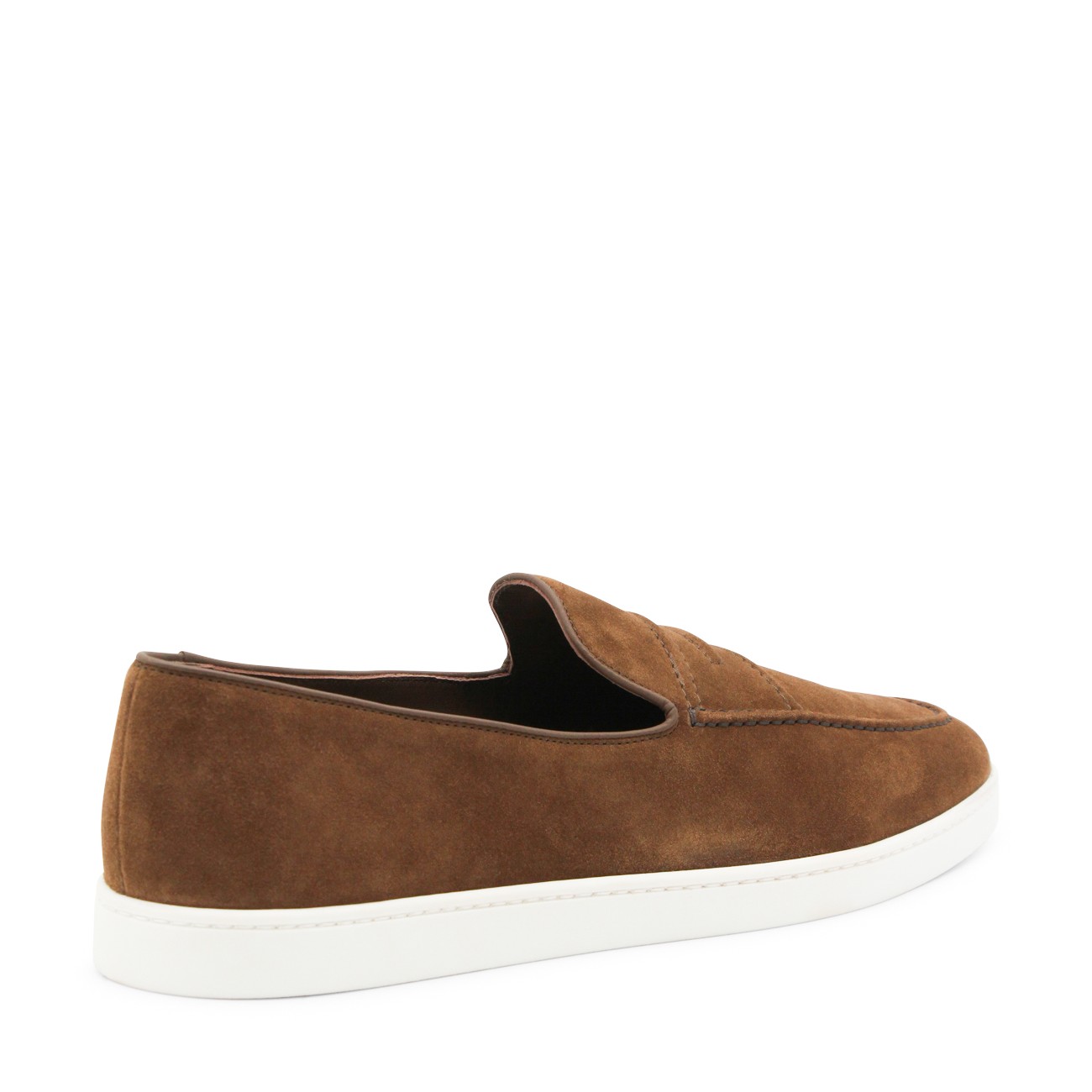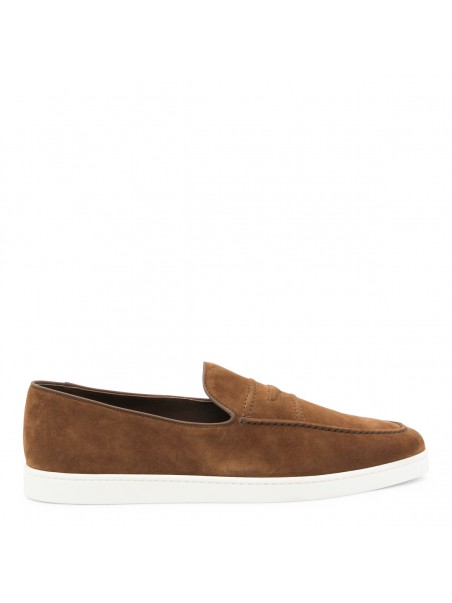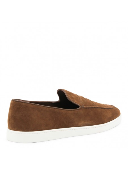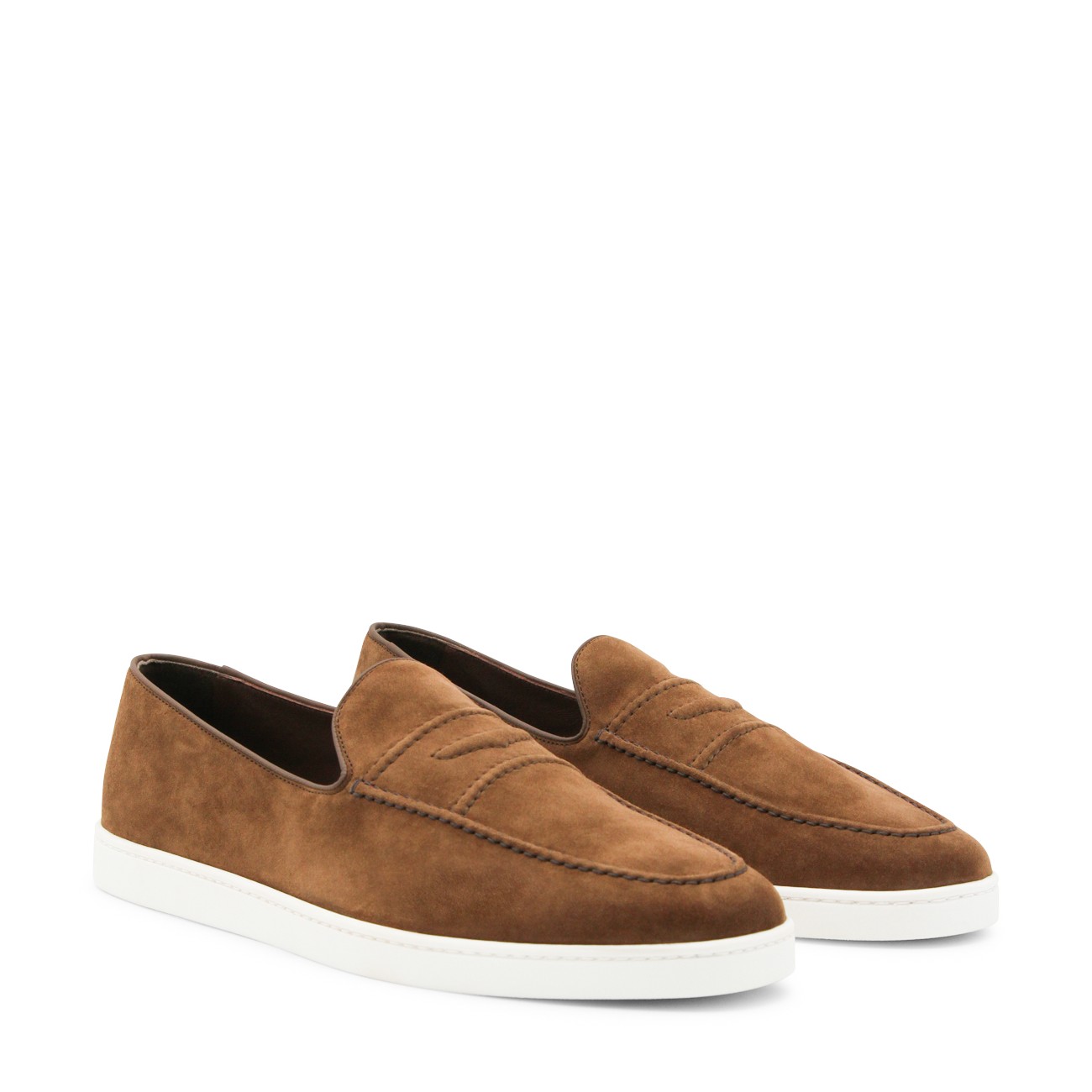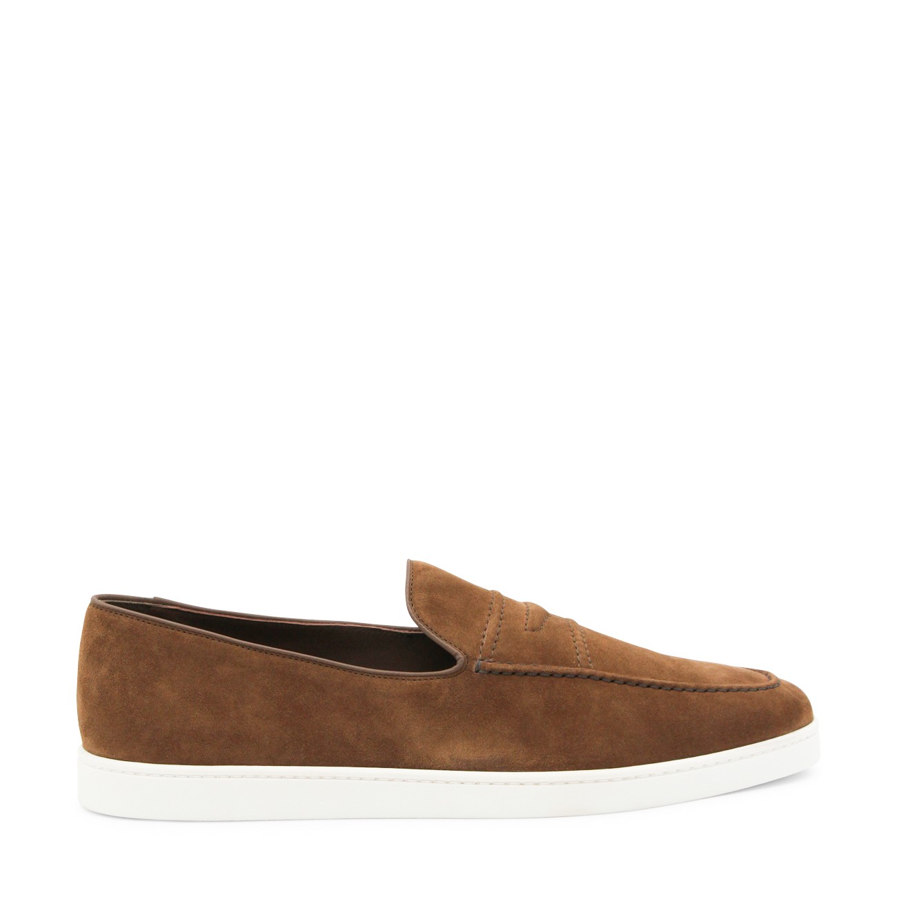 Brown leather loafers from Church's featuring round toe, slip-on style and rubber sole.