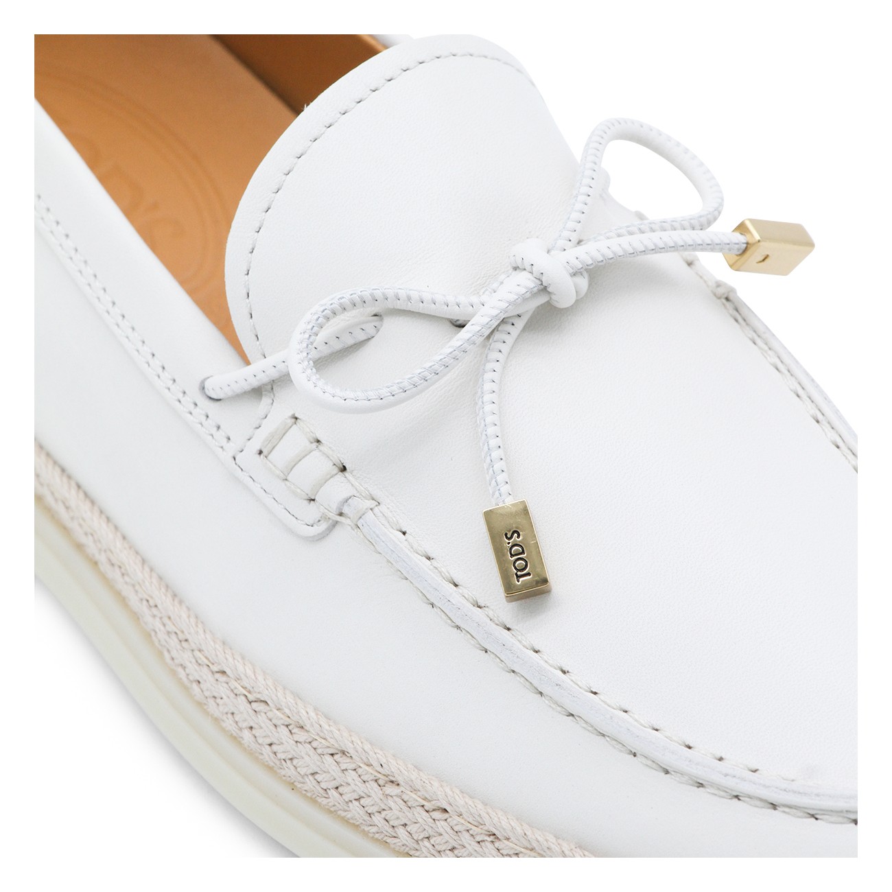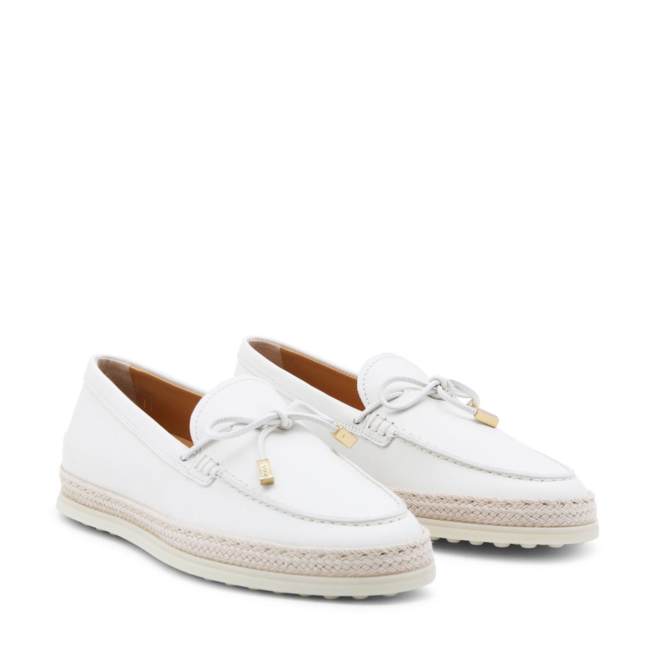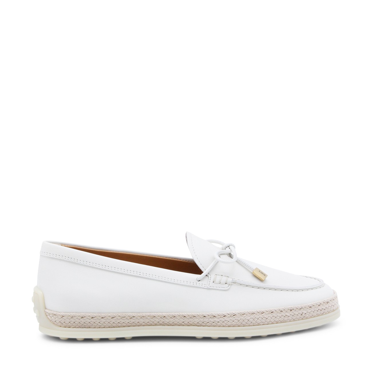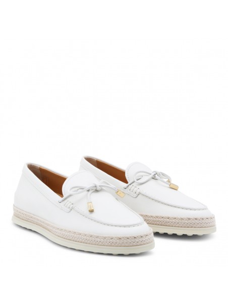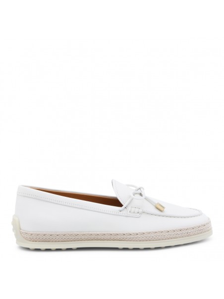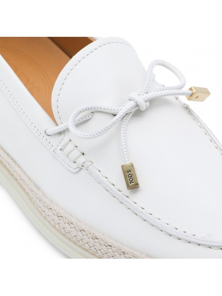 White leather loafers from Tod's featuring round toe, laces sole and frontal detail.