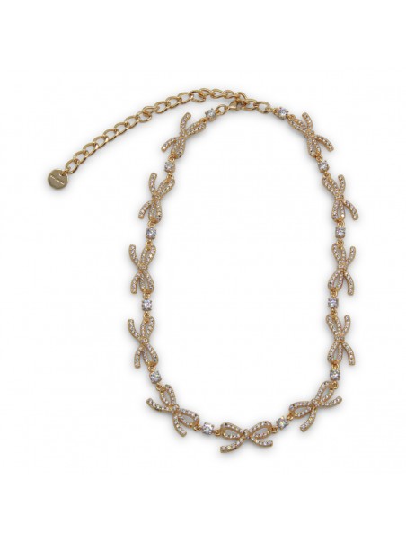 Gold tone necklace from Self-Portrait featuring back fastening, bow detail and gold tone hardware.