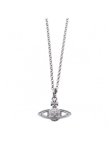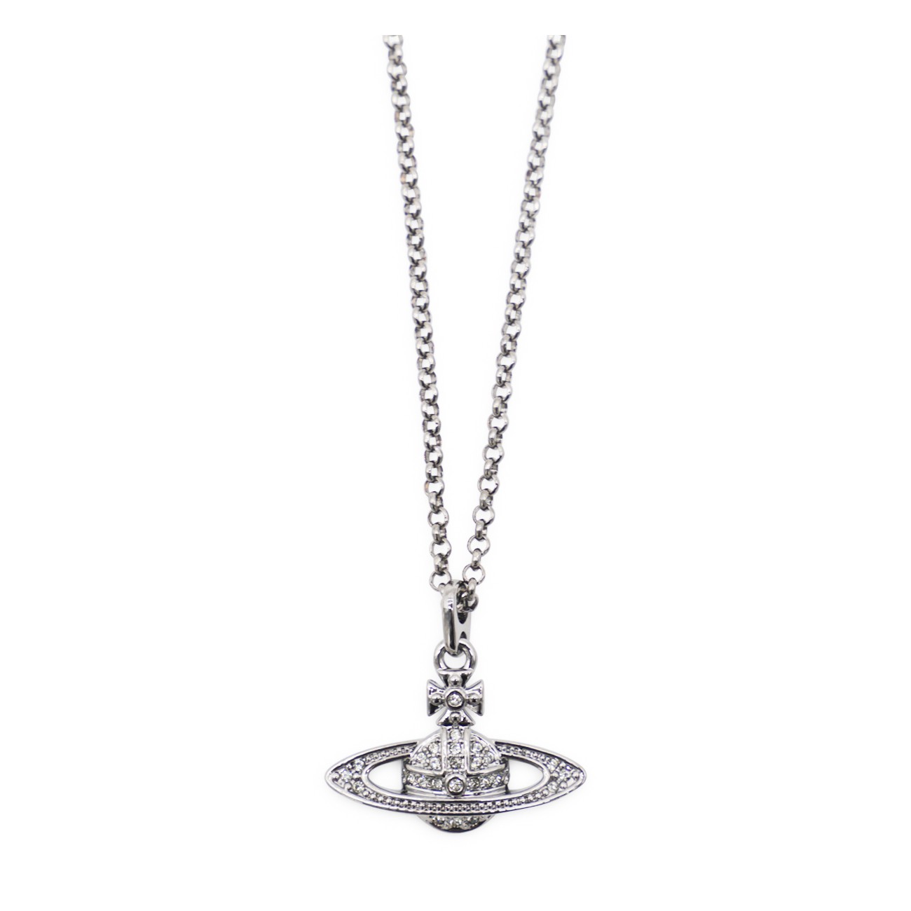 Silver metal necklace from Vivienne Westwood featuring Orb detail, crystal embellisment and classic fastening.