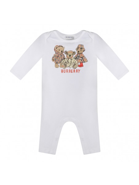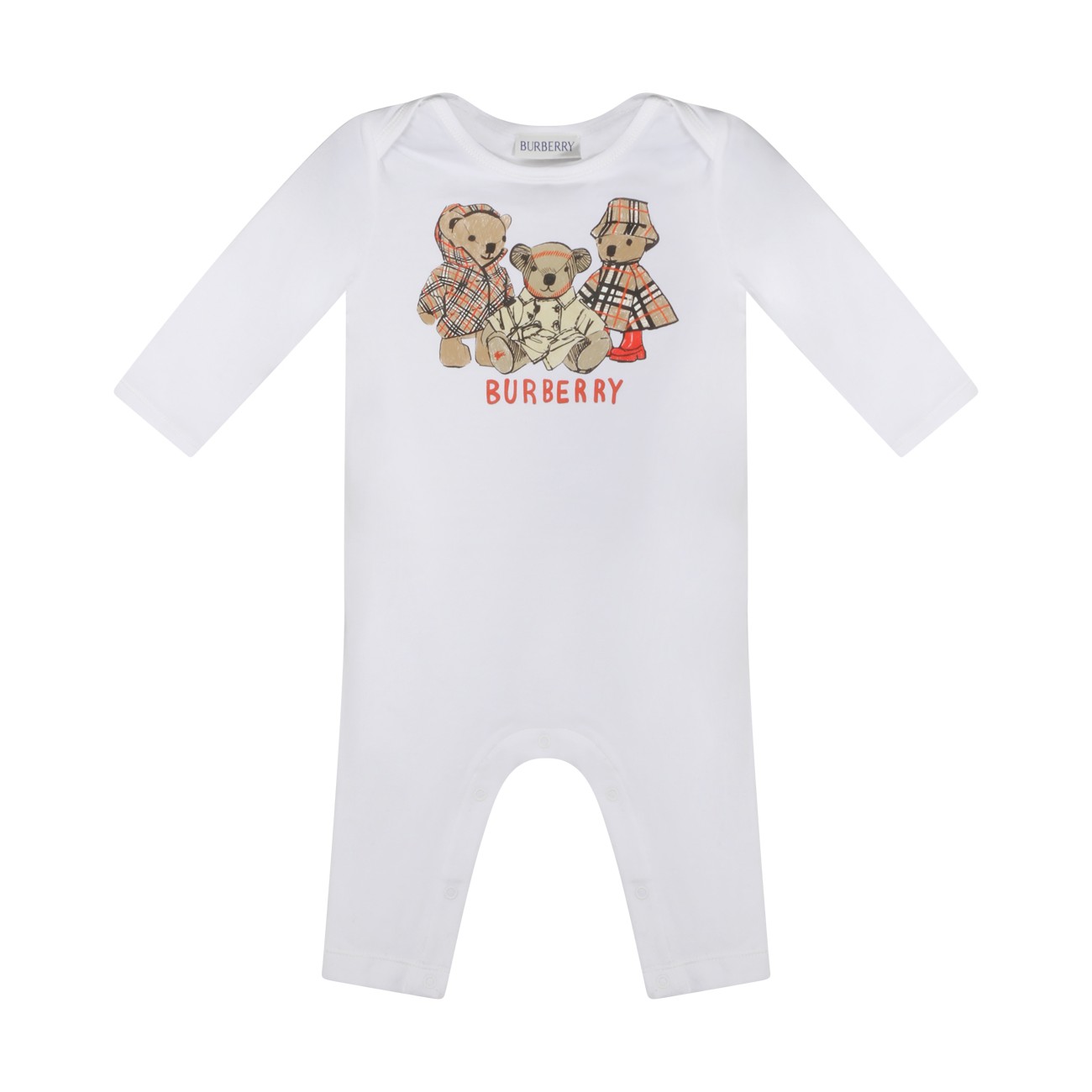 White cotton nursery from Burberry featuring long sleeves and frontal stamp.