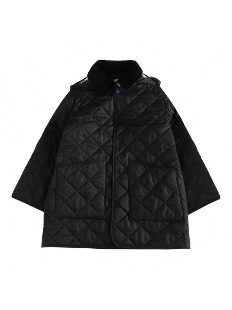 Black down jacket from Burberry featuring long sleeves, pockets, flared shape and regular vestibility.