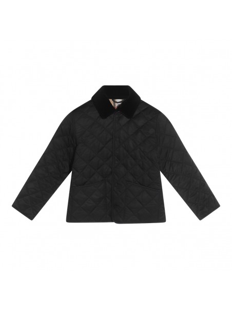 Black down jacket from Burberry featuring shirt collar, long sleeves, frontal buttons fastening, pockets, quilted effect and regular vestibility.