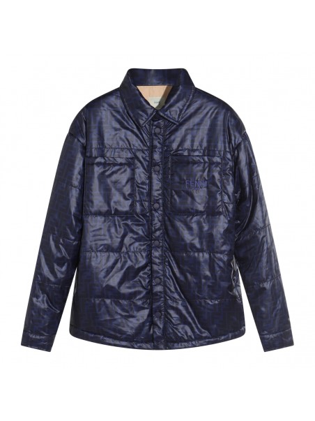 Dark blue down jacket from Fendi featuring long sleeves, shirt collar, frontal fastening and regular vestibility.