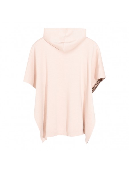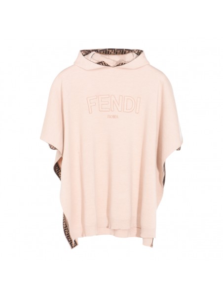 Beige wool cape from Fendi featuring hood, wide short sleeves, logo and soft vestibility.