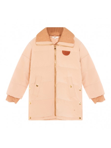 Light beige down jacket from Chlofeaturing ribbed collar, long sleeves, zip fastening, buttoned pockets, ribbed cuffs and regular vestibility.