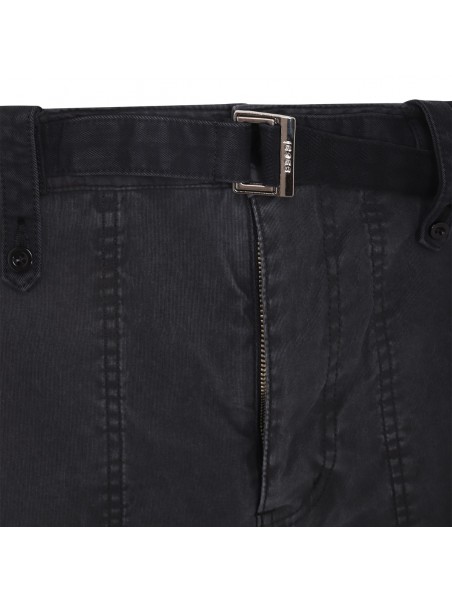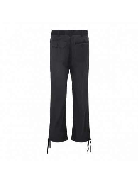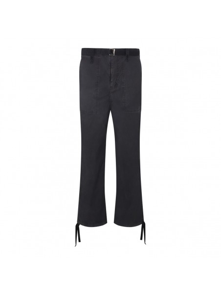 Black cotton pants from Sacai featuring frontal zip and button fastening, belt loops, hem regulable drawstrings, regular vestibility and two back pockets.
