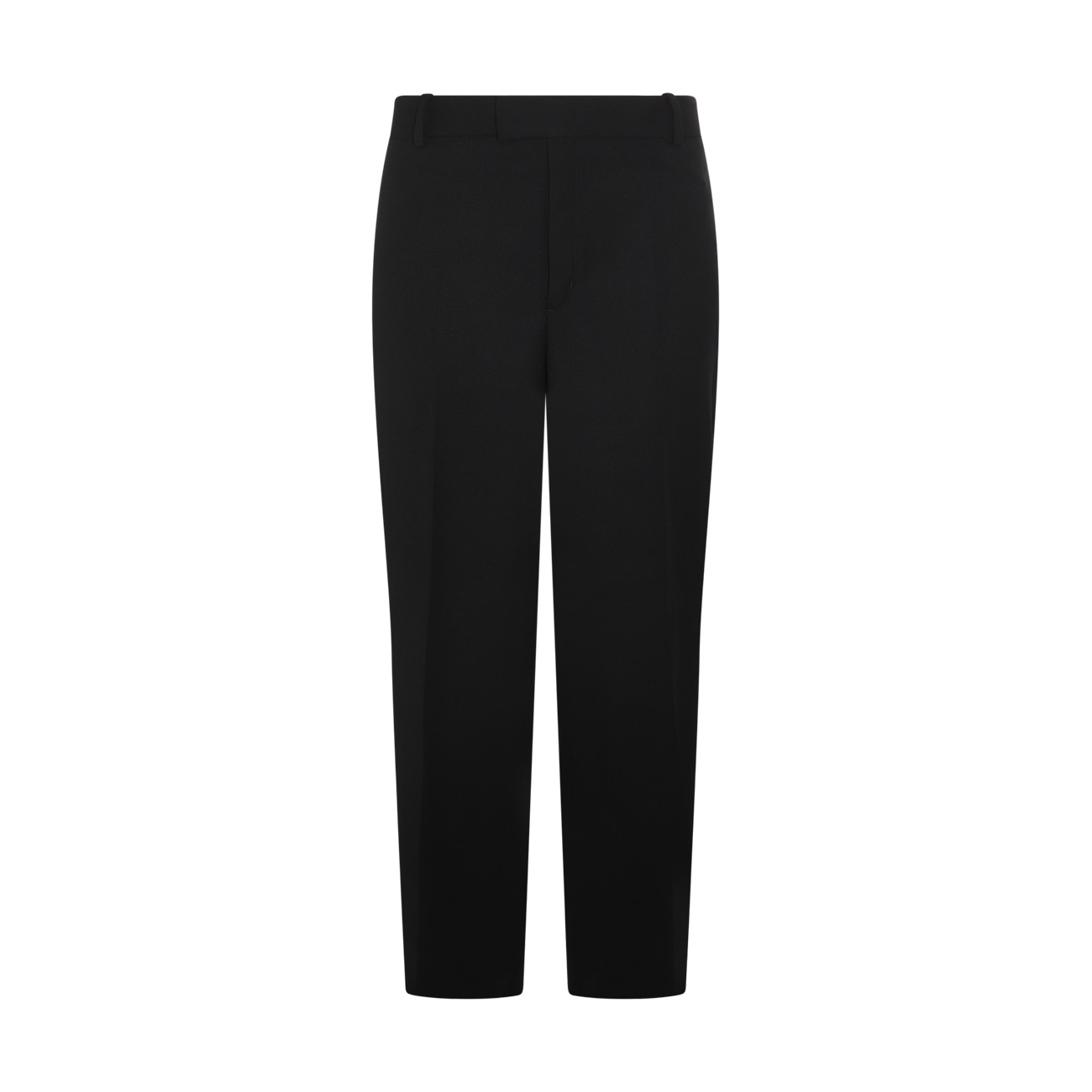 Black wool blend pants from Maison Kitsune featuring regular fit, side pockets, straight leg and belt loops.