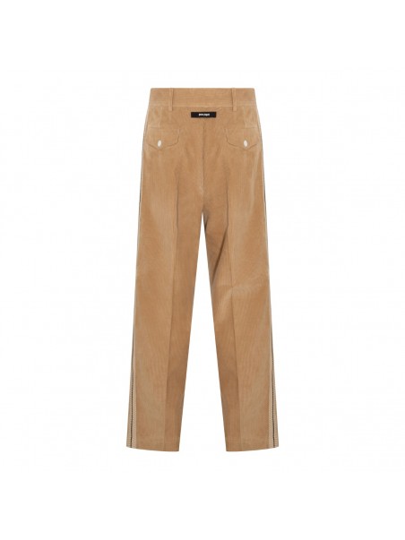 Beige cotton pants from Palm Angels featuring straight leg, zip closure fastening, belt loops and regular fit.