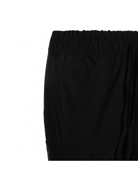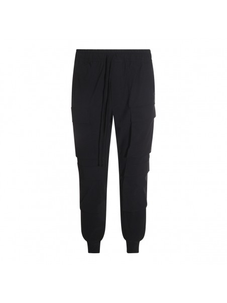 Black pants from Thom Krom featuring elasticizated waist, ribbed cuffs, drawstrings and pockets.