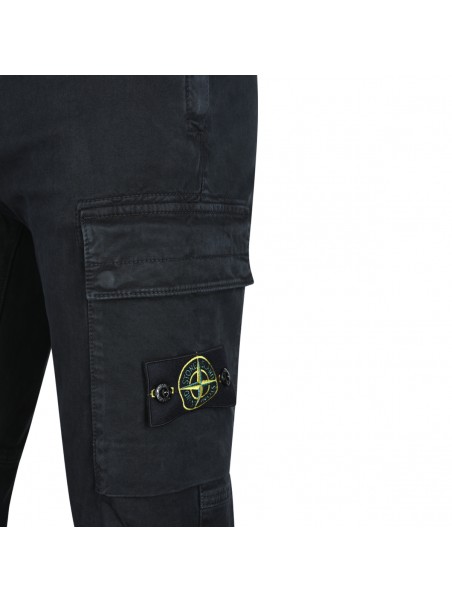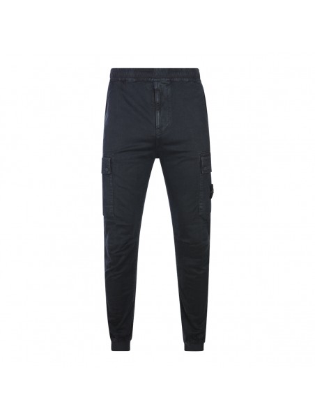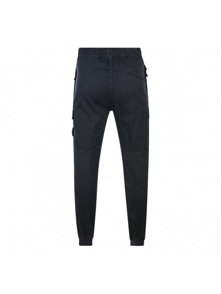 Black cotton pants from Stone Island featuring ribbed hems, relaxed fit, logo label and drawstring waistband.