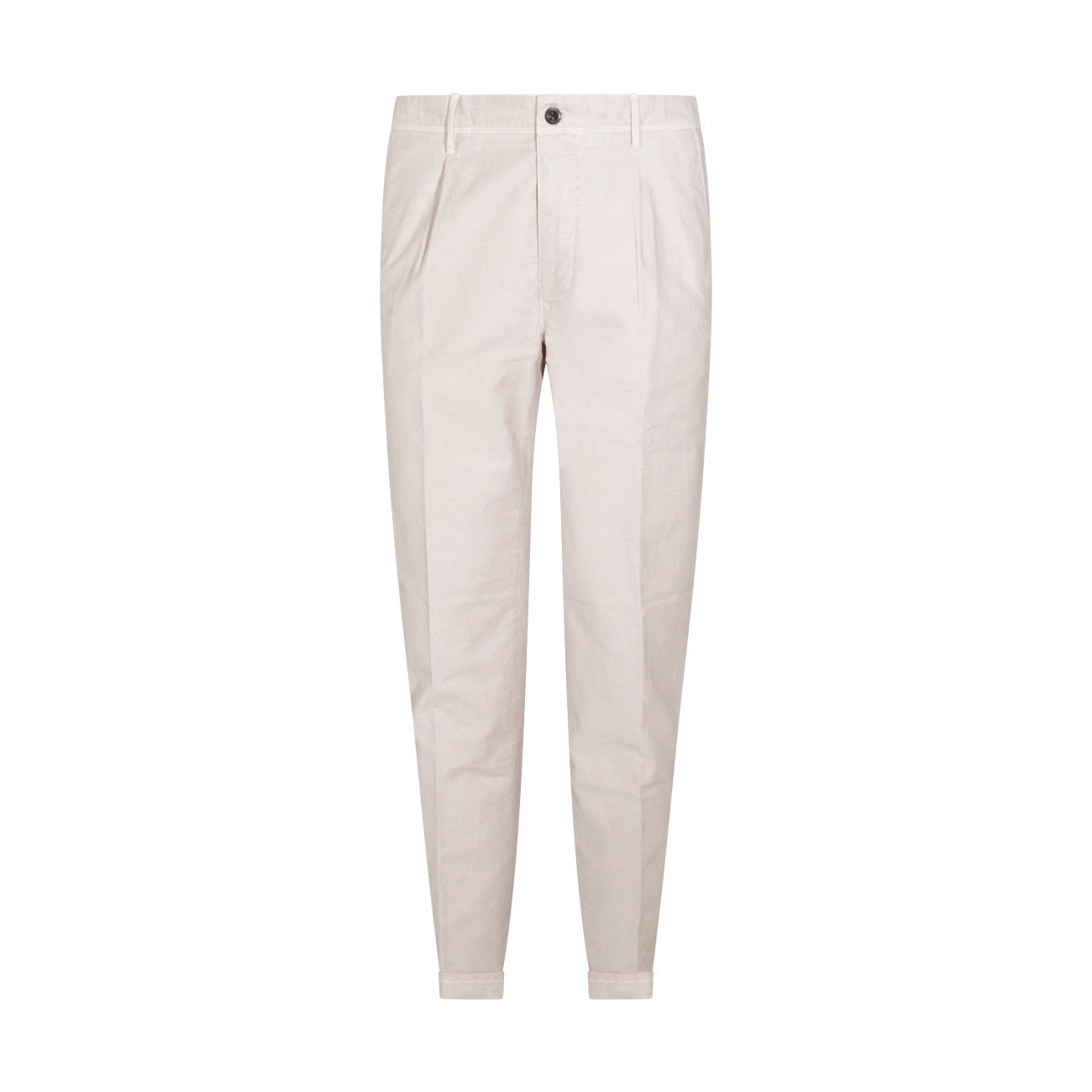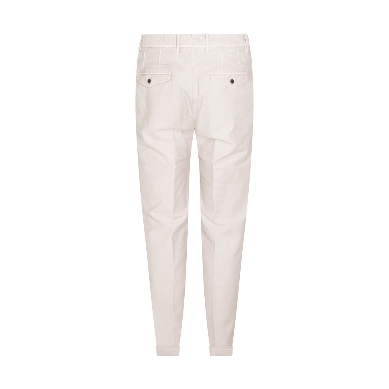 White cotton pants from Incotex featuring belt loops, zip and button fastening, straight leg and skinny.