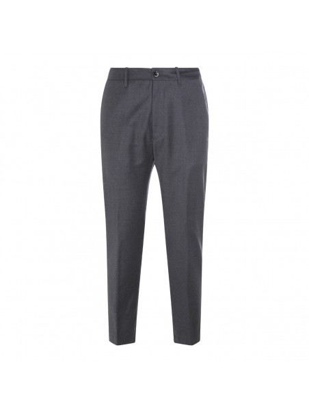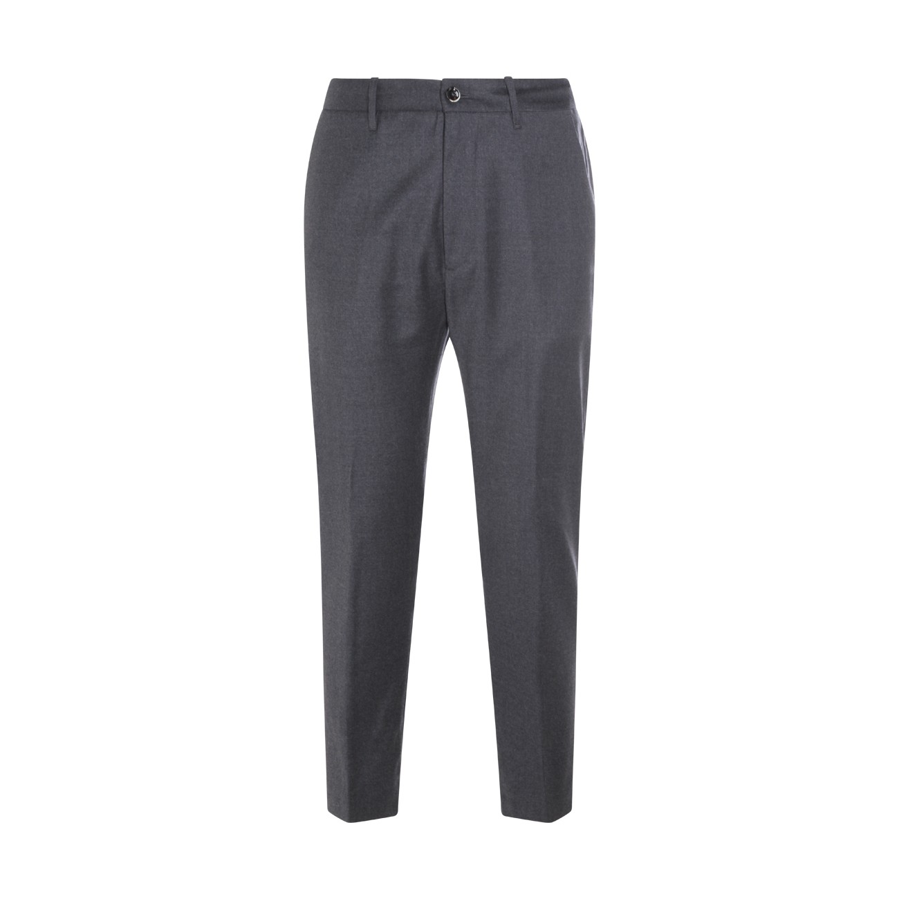 Grey wool pants from Nine In The Morning featuring belt loops, semi elasticated waistband, zip and button fastening and straight leg.