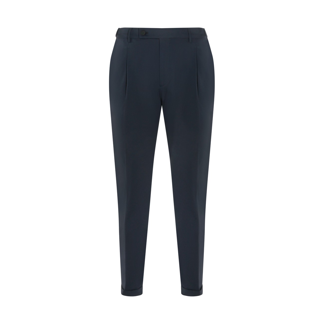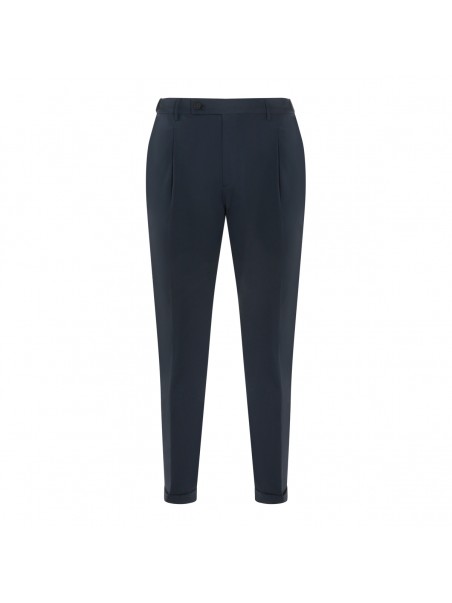 Blue pants from Berwich featuring belt loops, zip and button fastening, pockets and straight leg.