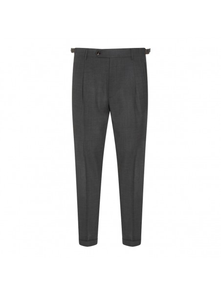 Dark grey pants from Berwich featuring high waist, frontal zip fastening, belt loops. back pockets and straight leg.