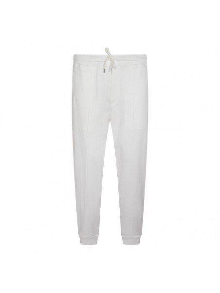 White cotton pants from Brunello Cucinelli featuring mid waist, lace fastening, pockets and soft vestibility.