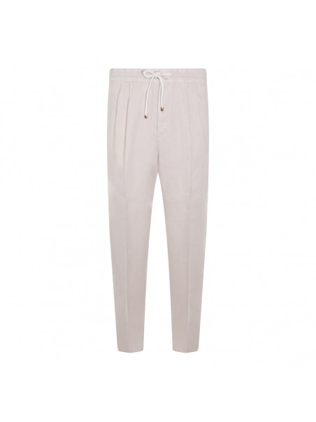 Yuta linen pants from Brunello Cucinelli featuring high elasticated waist, cotton laces, back pockets and regular vestibility.
