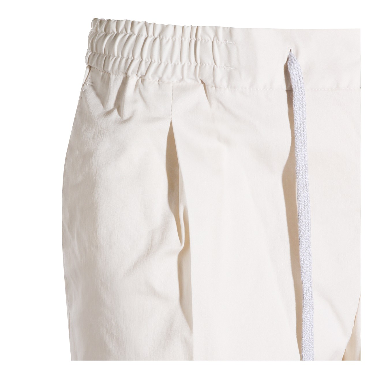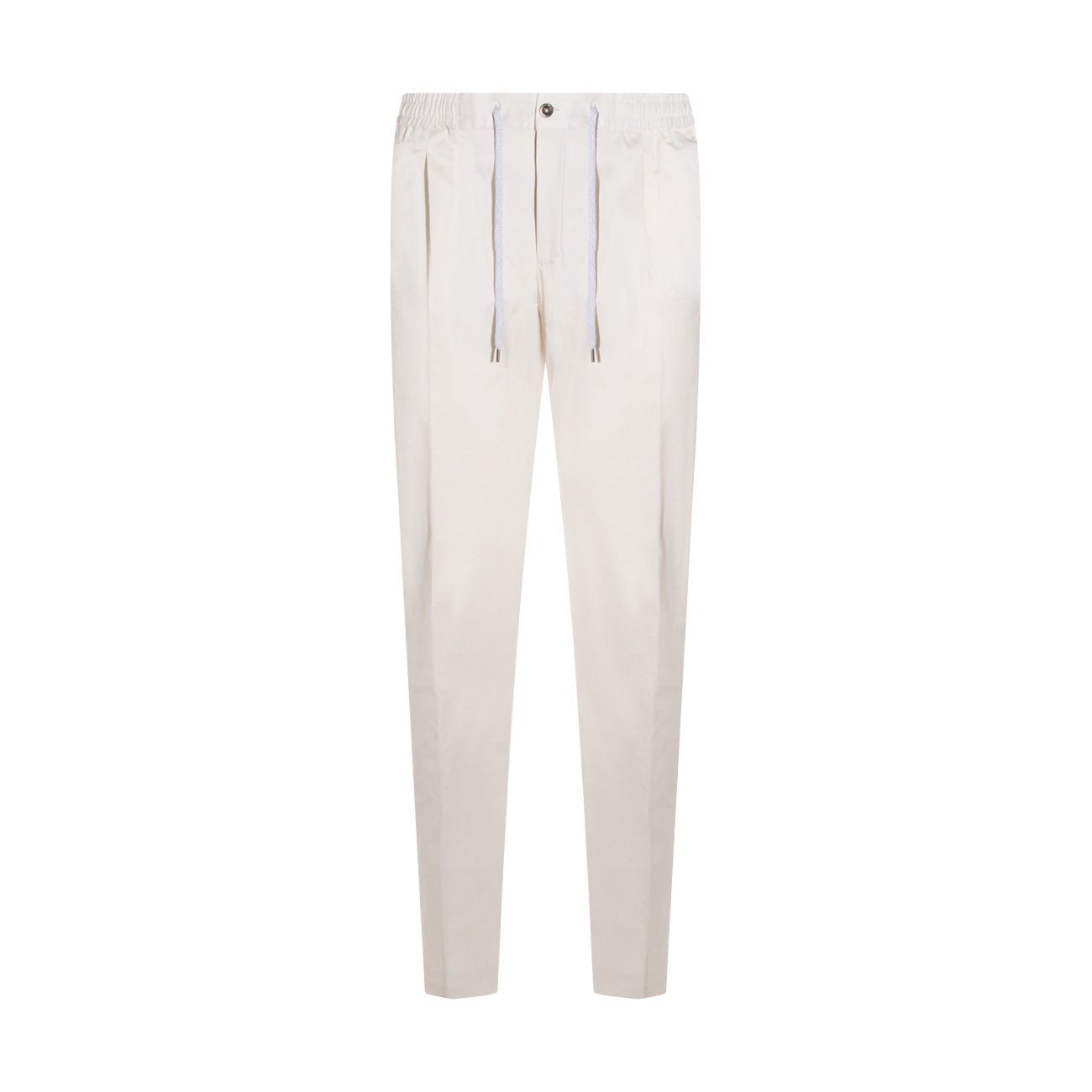 White cotton pants from PT Torino featuring elastic waist and drawstring, button and zip fastening, back pockets, straight leg and regular fit.