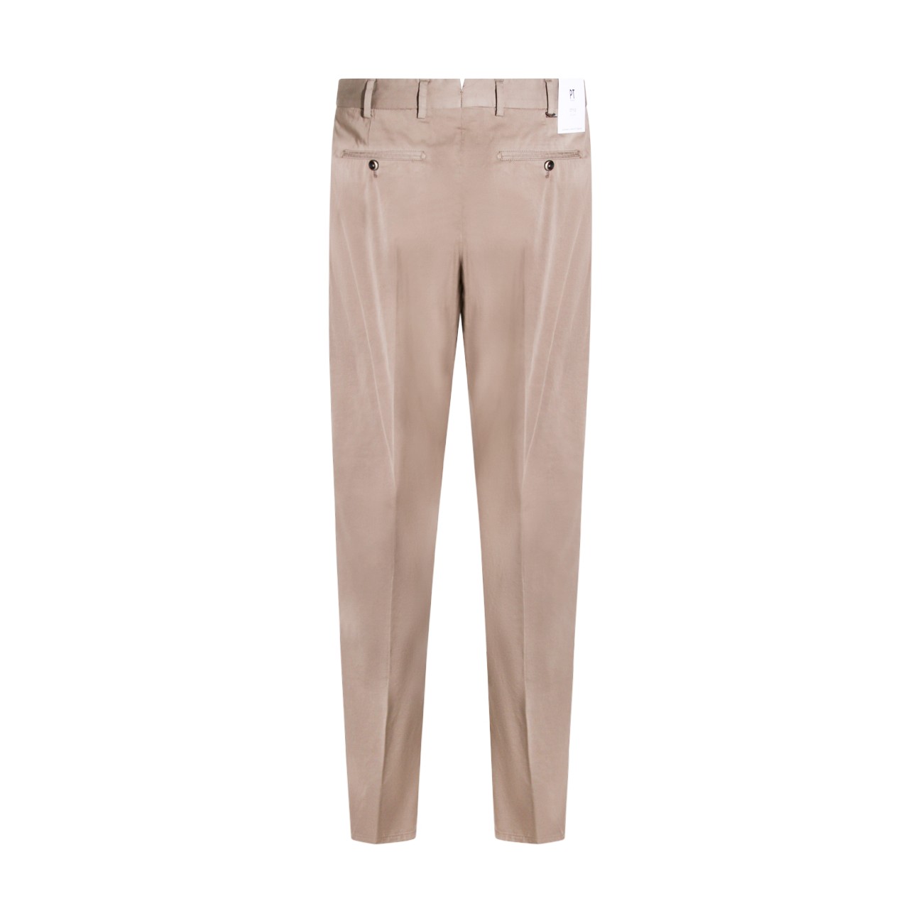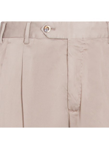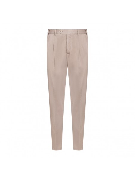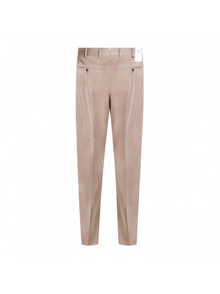 Beige cotton pants from PT Torino featuring high waist, belt loops, button and zip fastening, back buttons pockets, straight leg and slim vestibility.