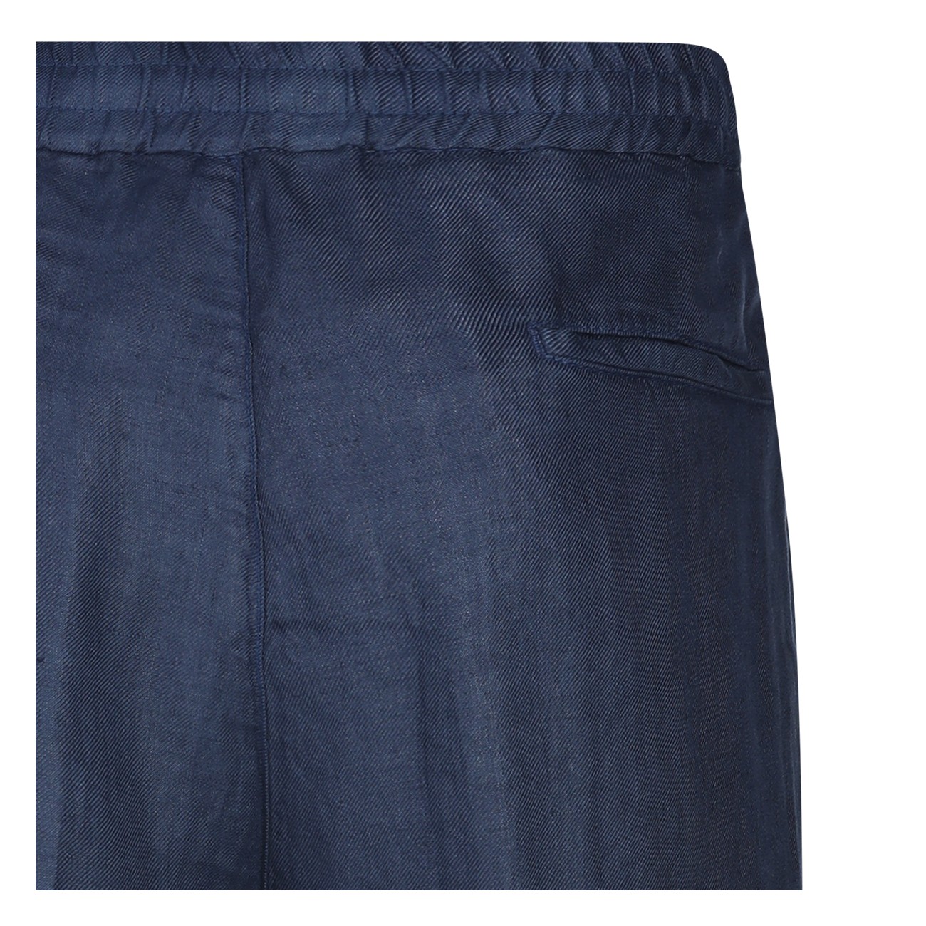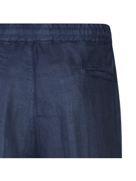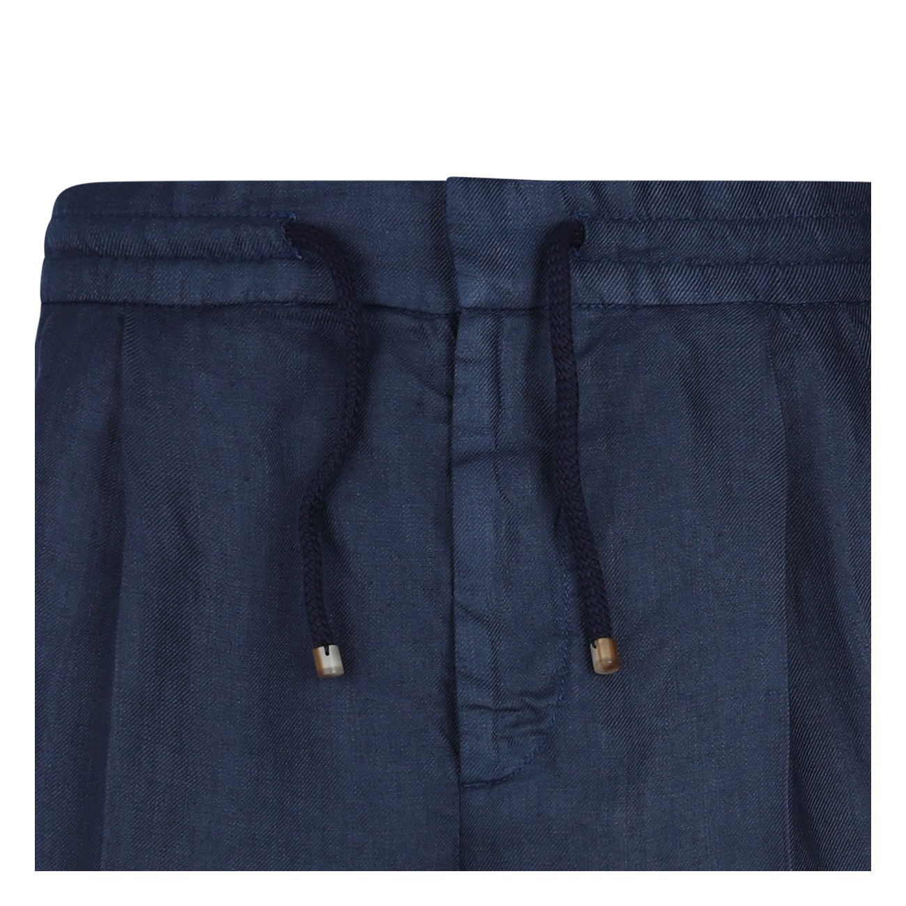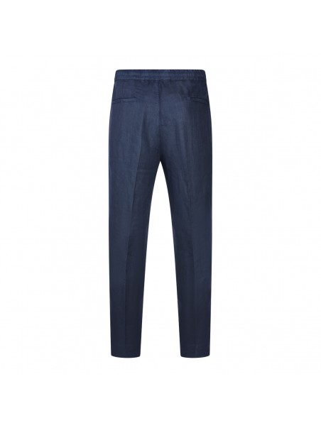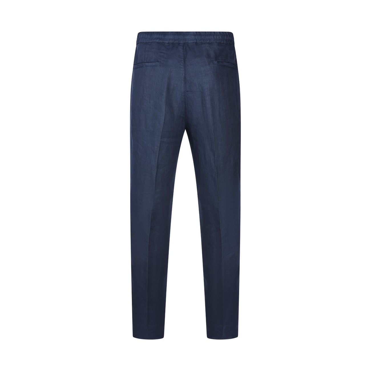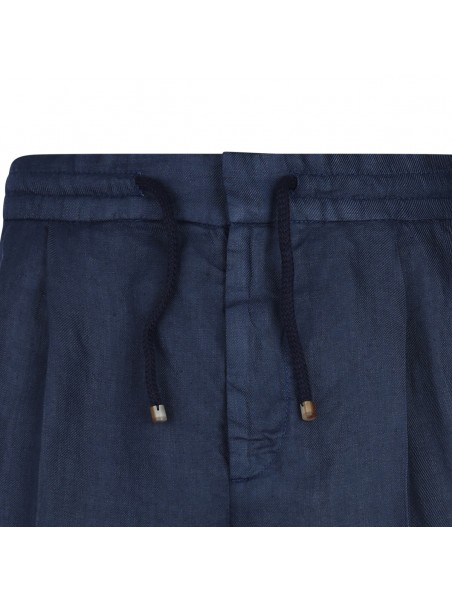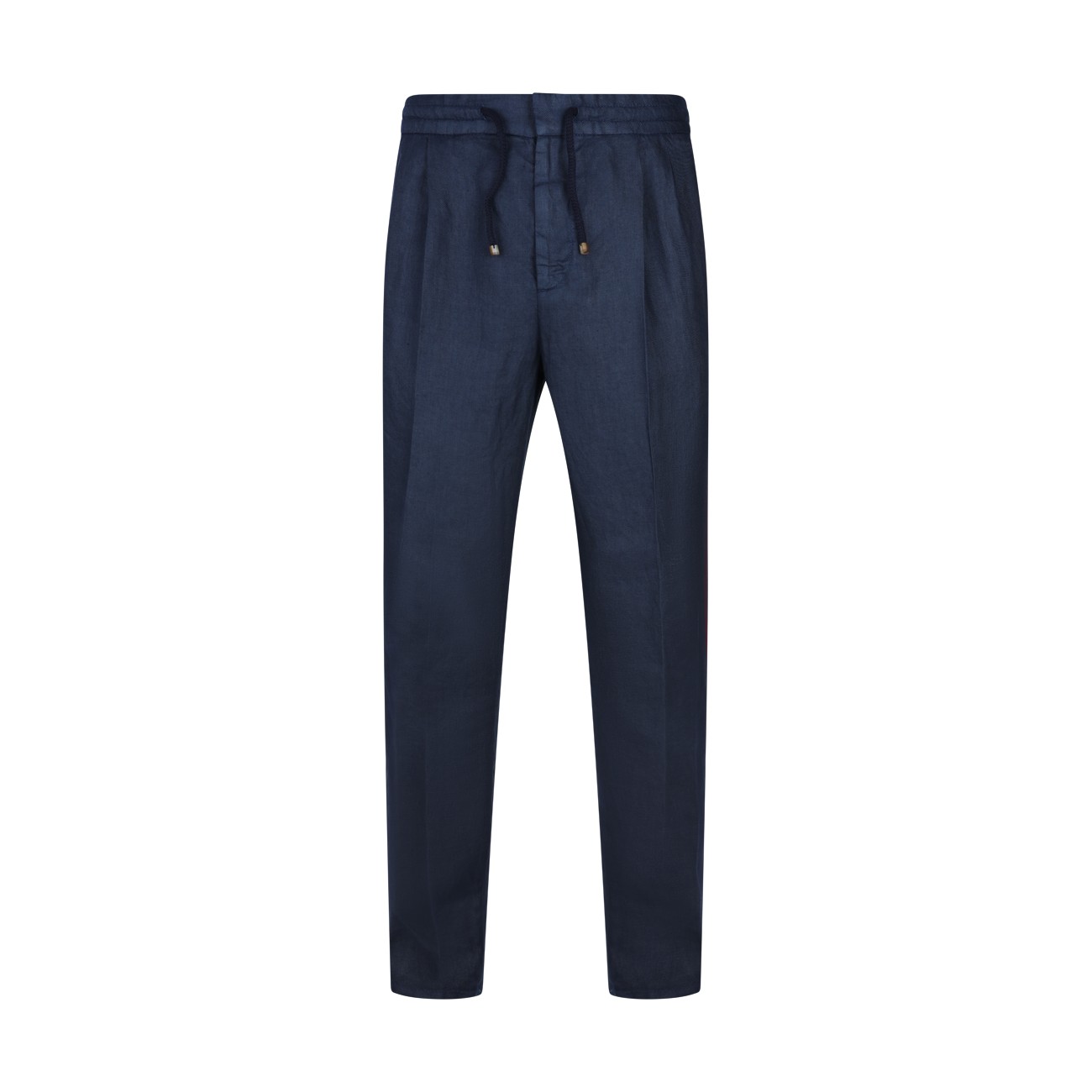 Navy linen pants from Brunello Cucinelli featuring high elasticated waist, cotton laces, back pockets and regular vestibility.