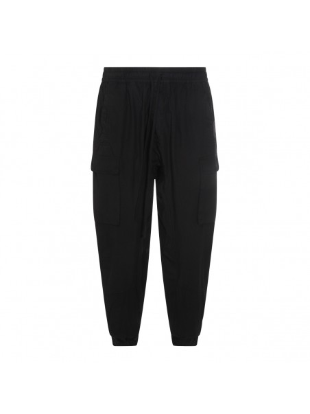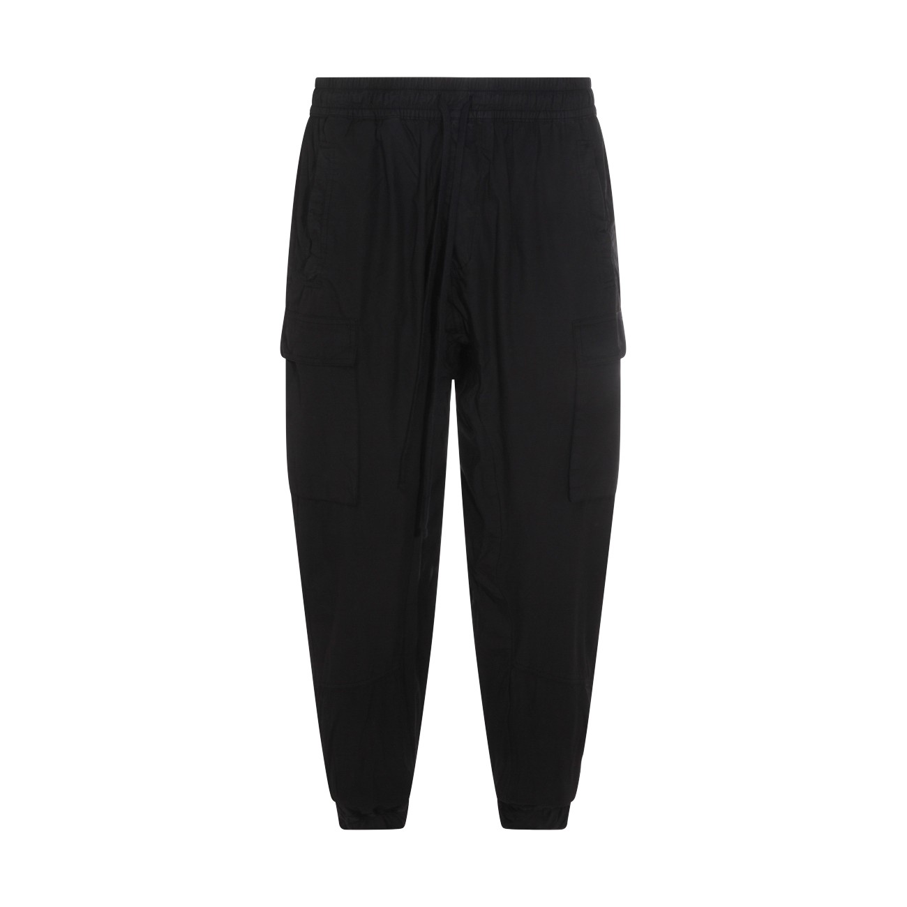 Black cotton pants from Thom Krom featuring elasticizated waist, drawstrings, pockets and logo patch.