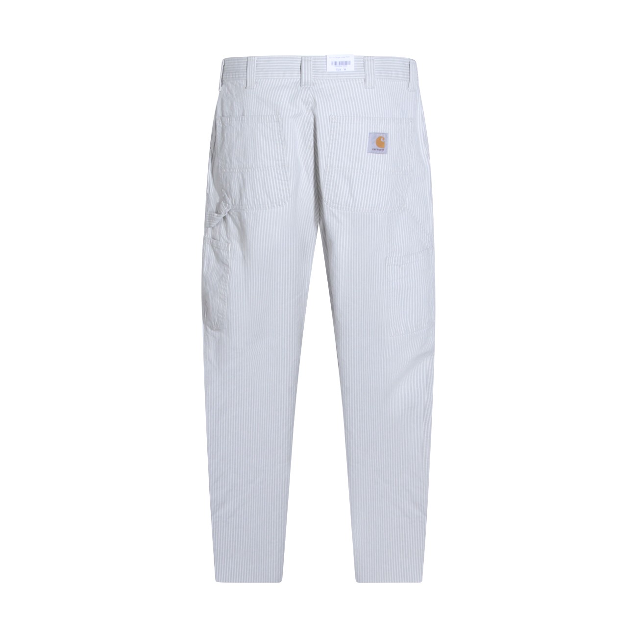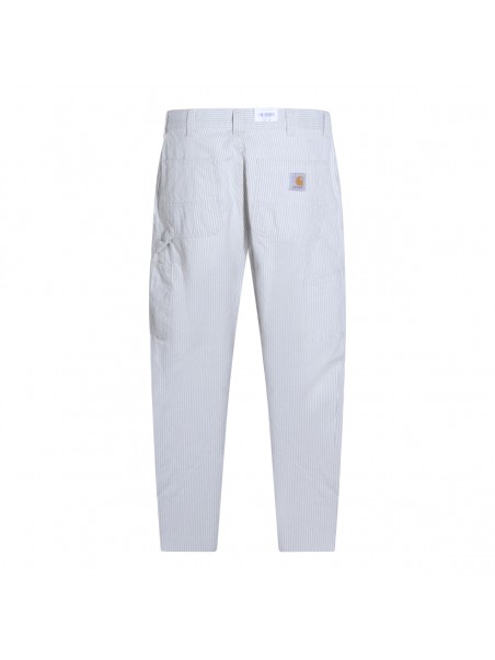 White cotton pants from Carhartt Wip featuring frontal fastening, pockets and regular vestibility.