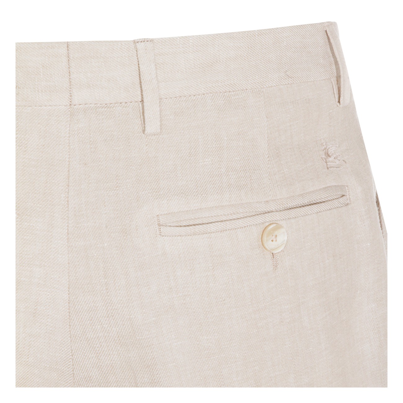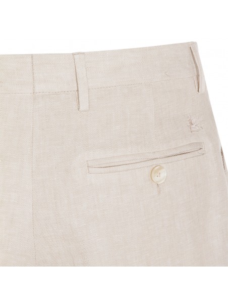 Beige linen pants from Etro featuring frontal fastening, belt loops and regular vestibility.