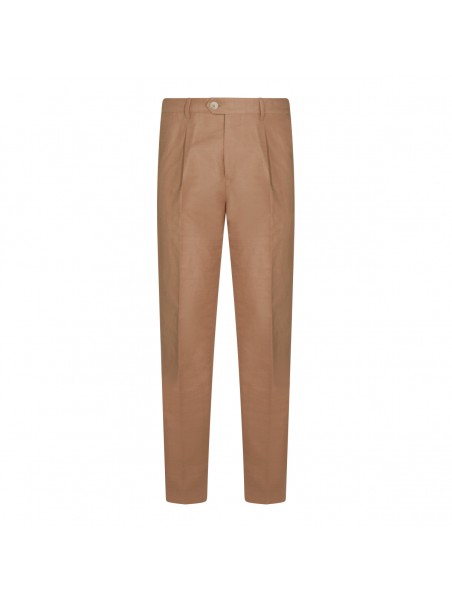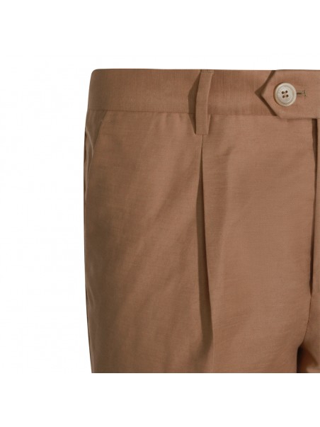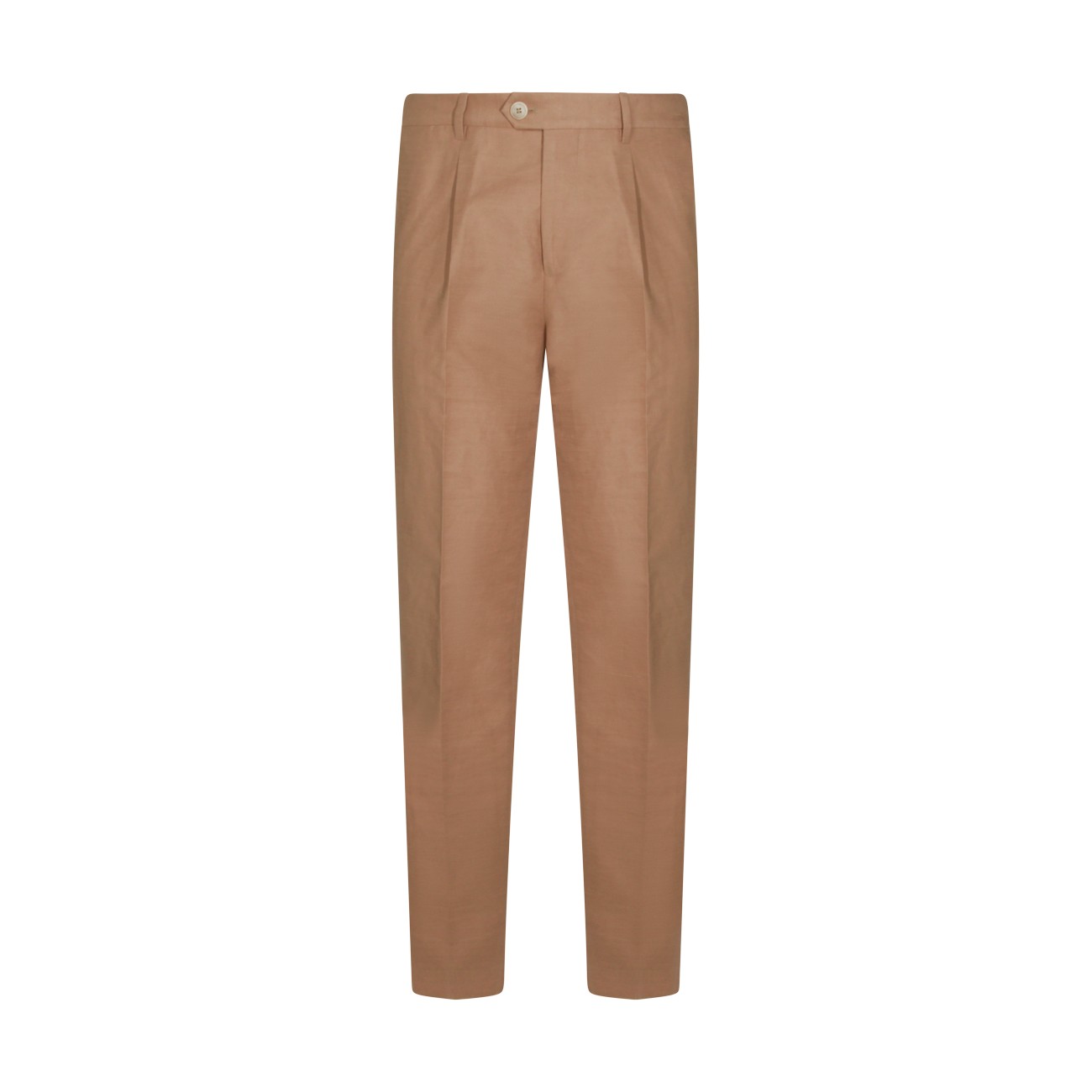 CARAMEL COTTON AND LINEN BLEND PANTS
