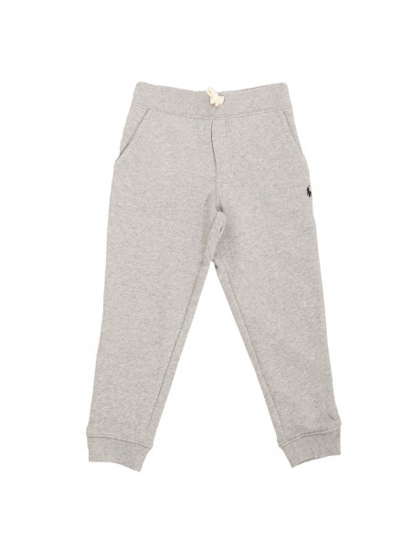 Grey cotton track pants from Polo Ralph Lauren featuring an elasticated waistband, drawstring fastening, side slit pockets, embroidered logo and ribbed hems.