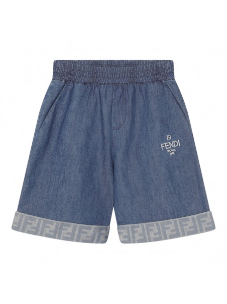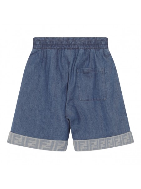 Blue cotton short from Fendi featuring elasticated waistband, pockets and branded edge.