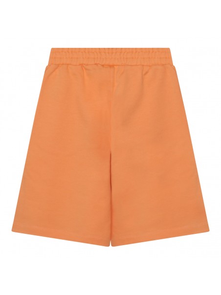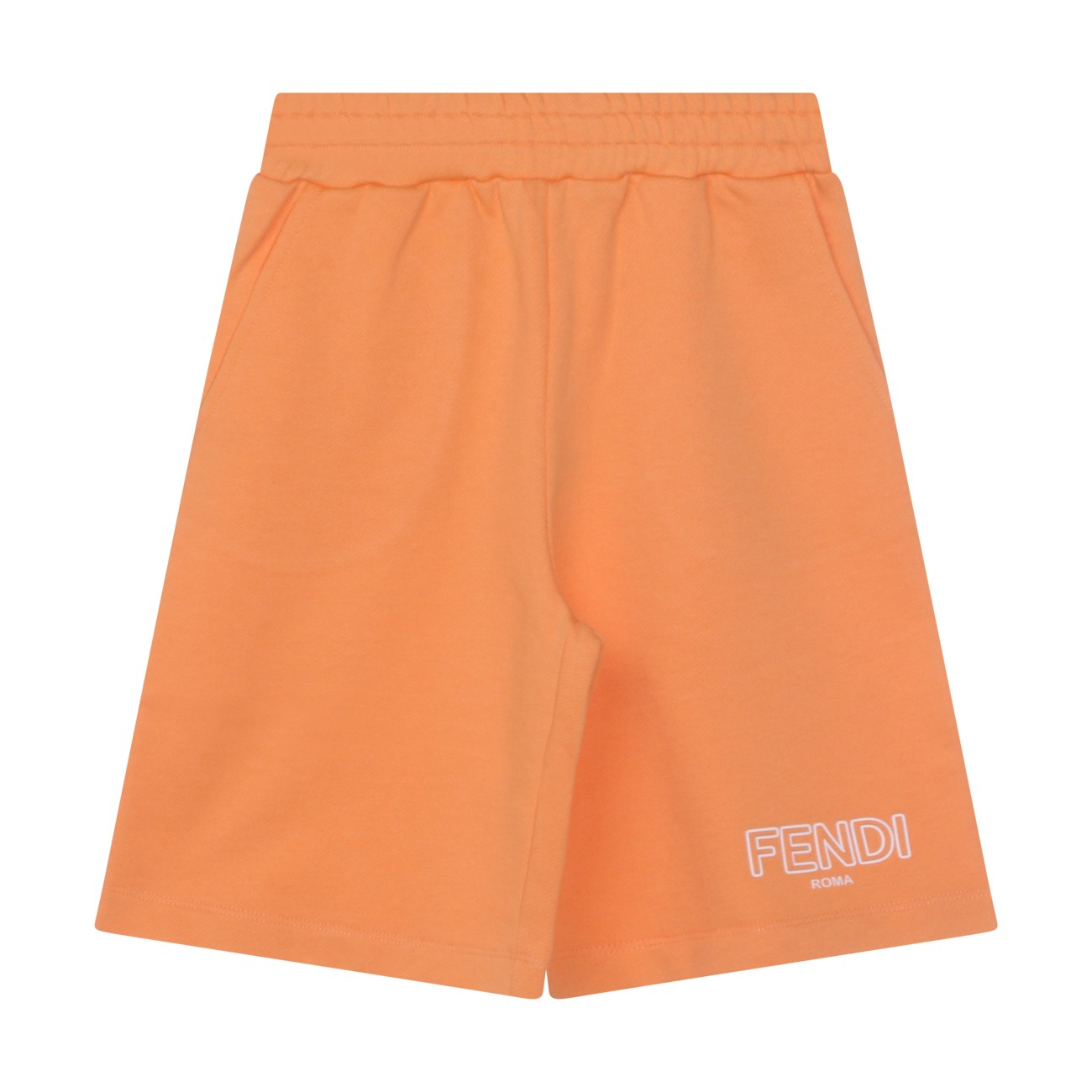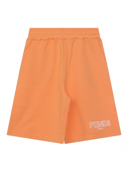 Orange cotton shorts from Fendi Kids featuring mid length, regular fit, embroidered logo inserts and elasticated waistband.